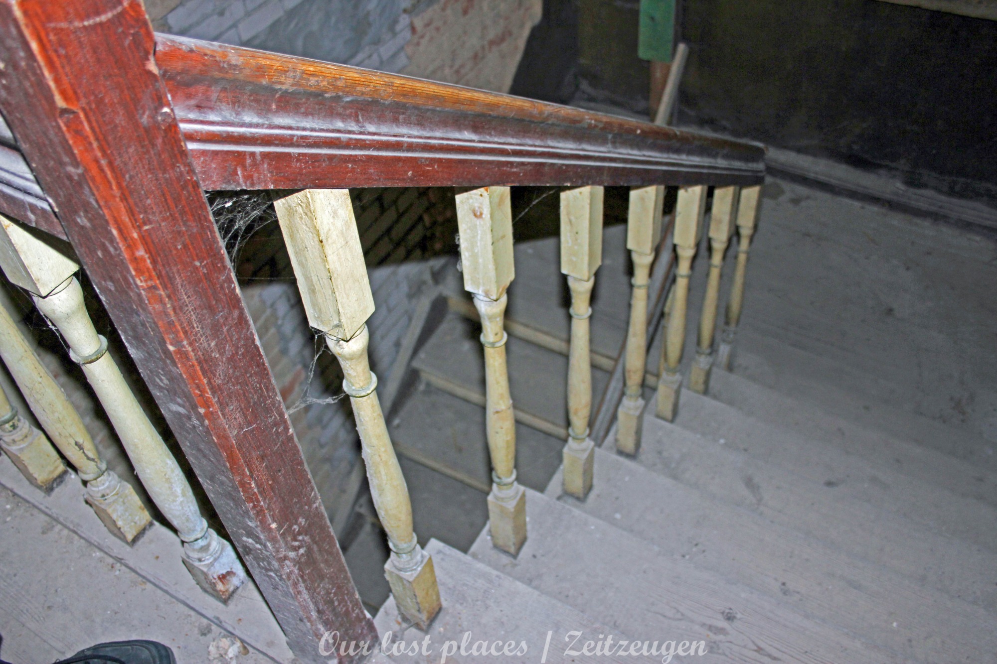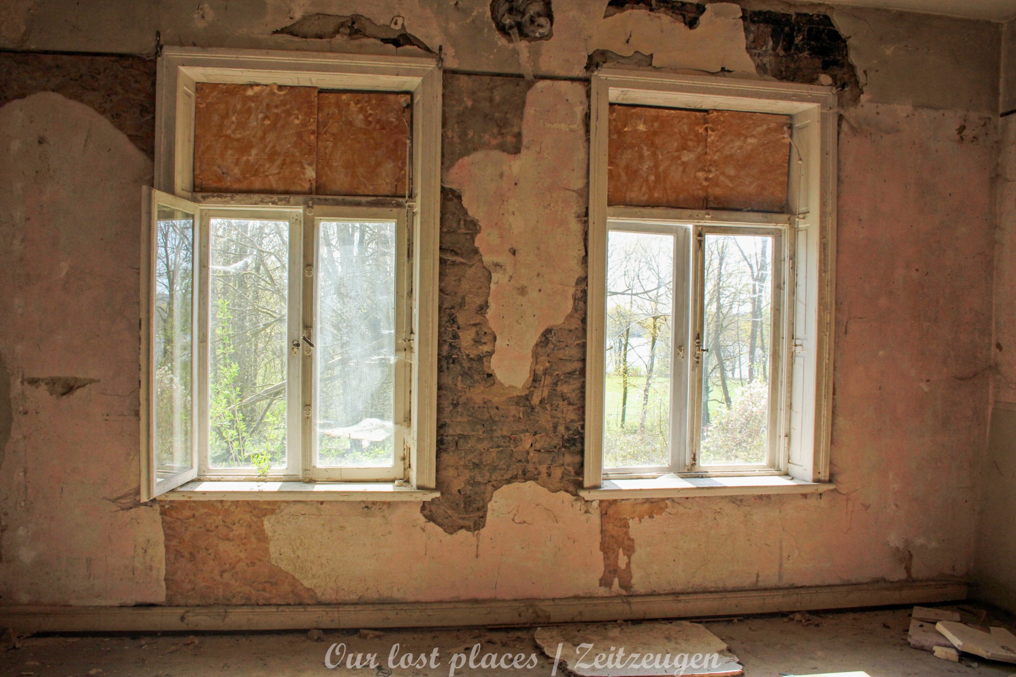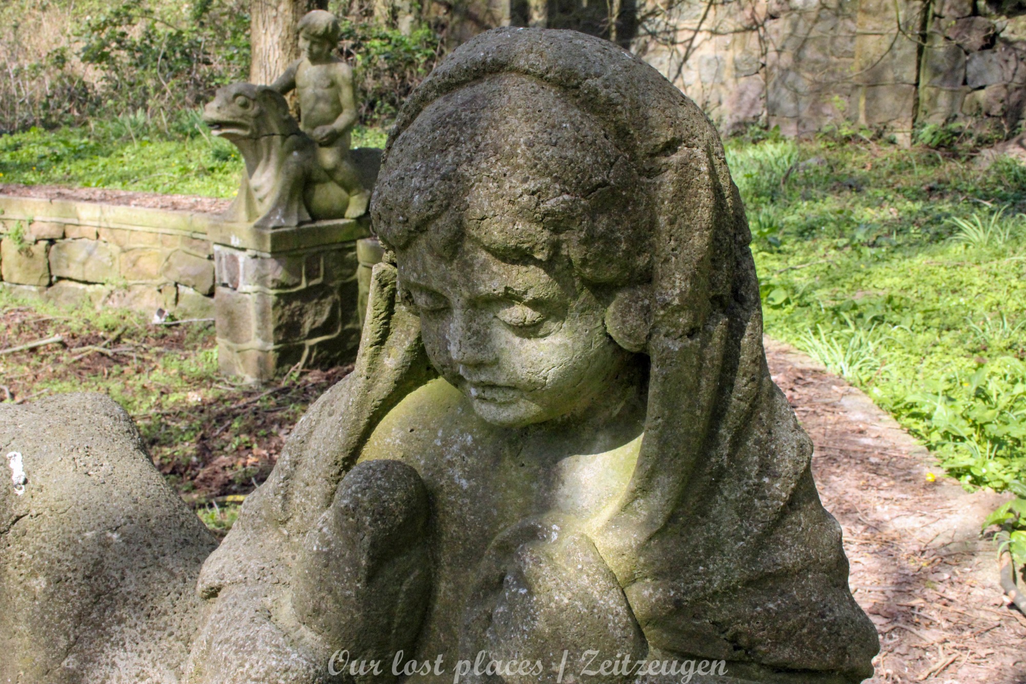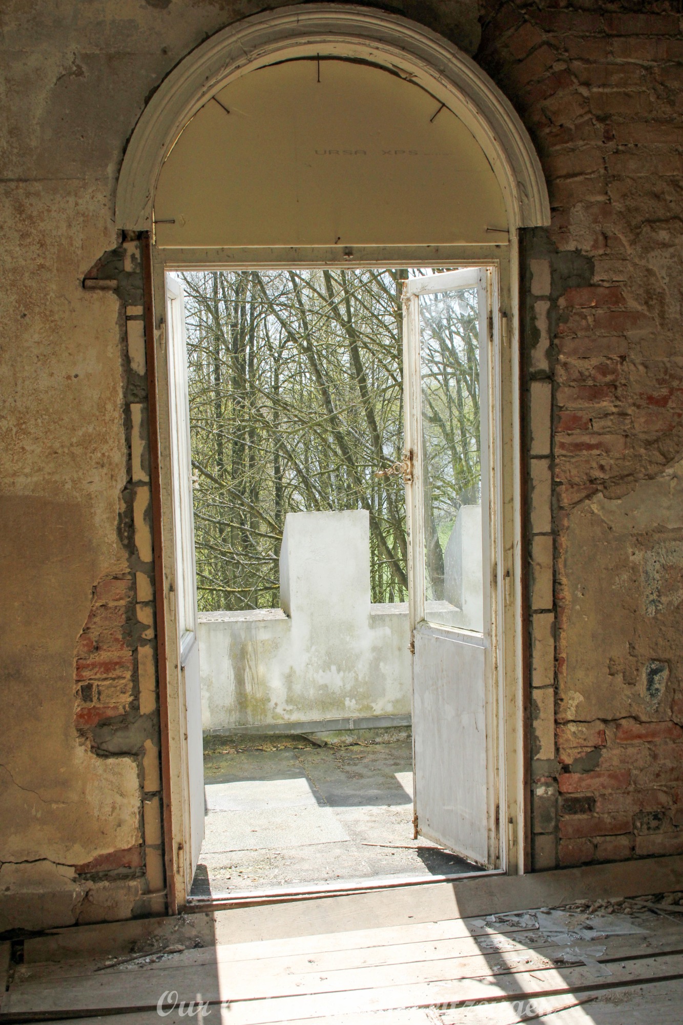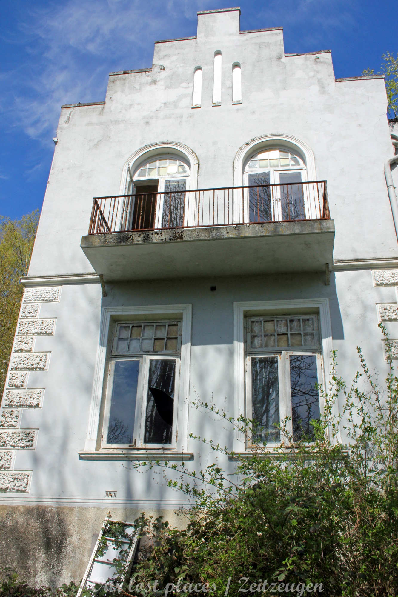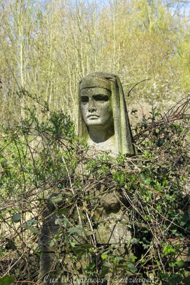 Man muss schon etwas suchen, da das Objekt nicht gerade auf dem Präsentierteller liegt. Gut versteckt in einem ehemaligen Park, der mittlerweile sehr stark zugewuchert ist. Im Sommer machen sich Brombeeren breit (die Freunde jedes Fotografen) und die Bäume sind stark Efeuberankt. Das vermeidliche Schloss ist gar kein Schloss, sondern eine umgebaute Bauernkarte die im 19 Jhs. errichtet wurde. Zu Beginn des 20 Jhs. erwarb ein Berliner Kaufmann, der in den Adelsstand erhoben wurde, mit wenig architektonischem Gespür. Er ließ die Bauernkarte erweitern und zu einem Möchtegern- Prunkschloss umbauen. Schließlich wollte man als Adliger ja auch standesgemäß wohnen. Das Ursprungshaus wurde mit Erkern, Vorbauten, Zinnen und einem Burg ähnlichen Turm versehen. In dem ehemaligen Dorf wurde von den Einheimischen nur noch von dem „Schloss“ gesprochen. Erst ein Besitzerwechsel brachte etwas Ästhetik in das Anwesen. Es wurde ein umfangreicher Park gestaltet. Vor dem Haus wurde mit mehreren Mauern ein terrassenähnlicher Aufbau gestaltet. Davor wurde ein großer Brunnen mit vielen Figuren errichtet, aus denen früher Wasser floss. Es gab sogar eine Allee, die vom Haus bis zum angrenzenden See führte. Das Haus steht seit Jahrzehnten leer und wird dadurch nicht besser.