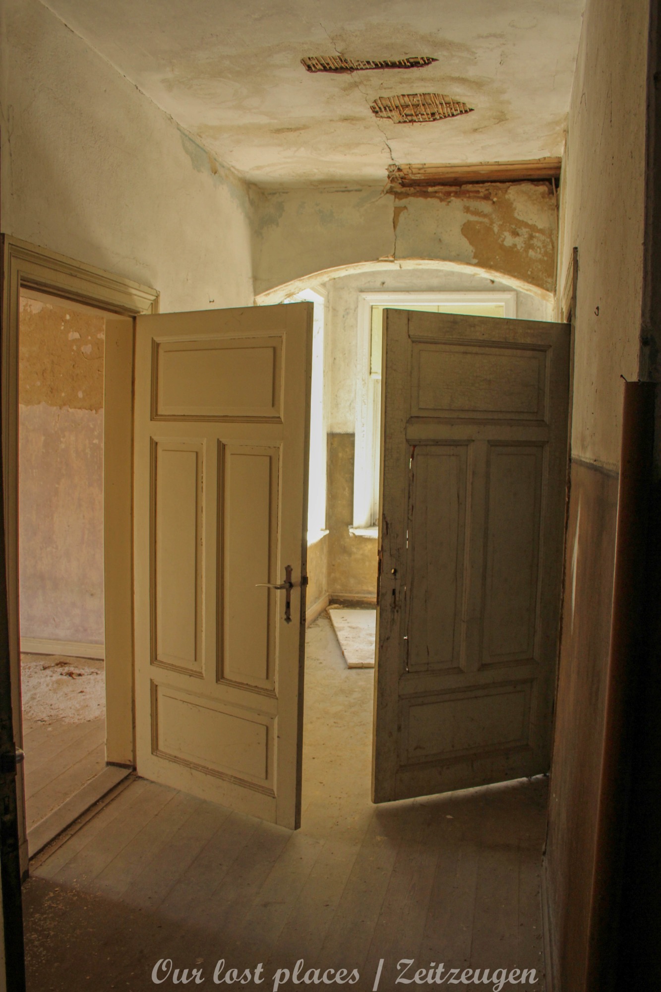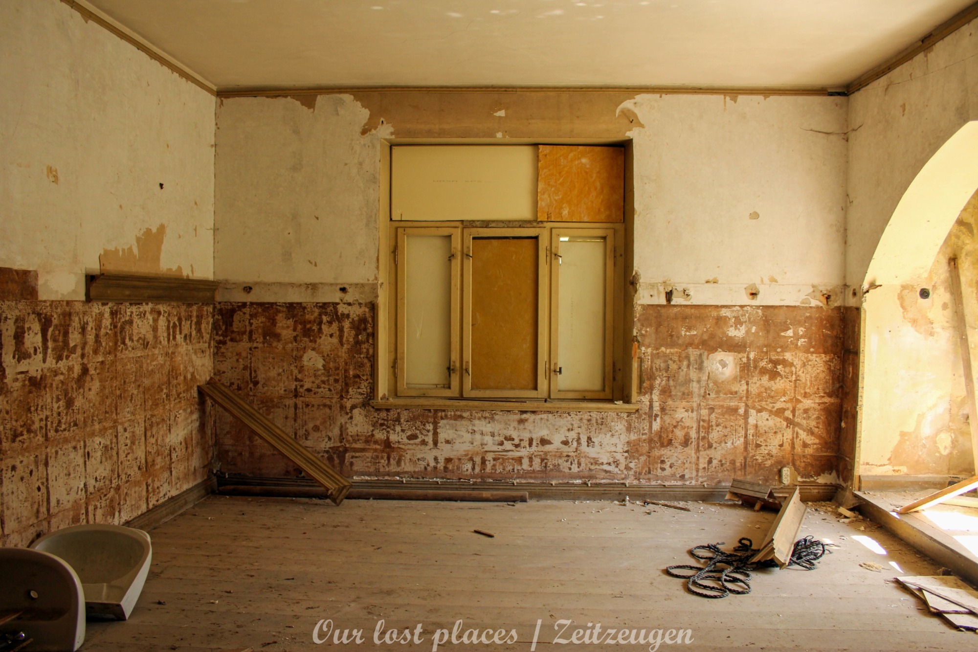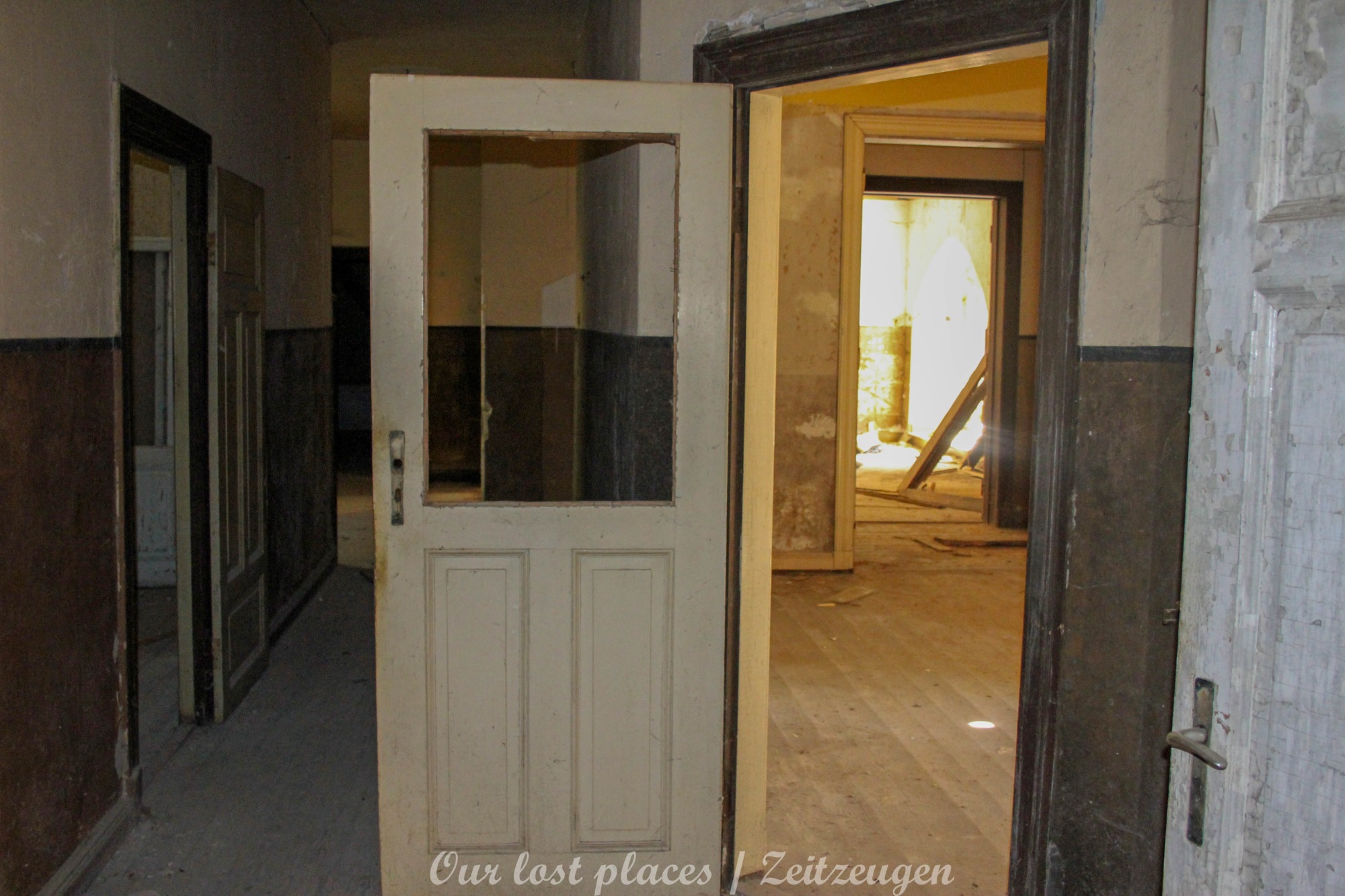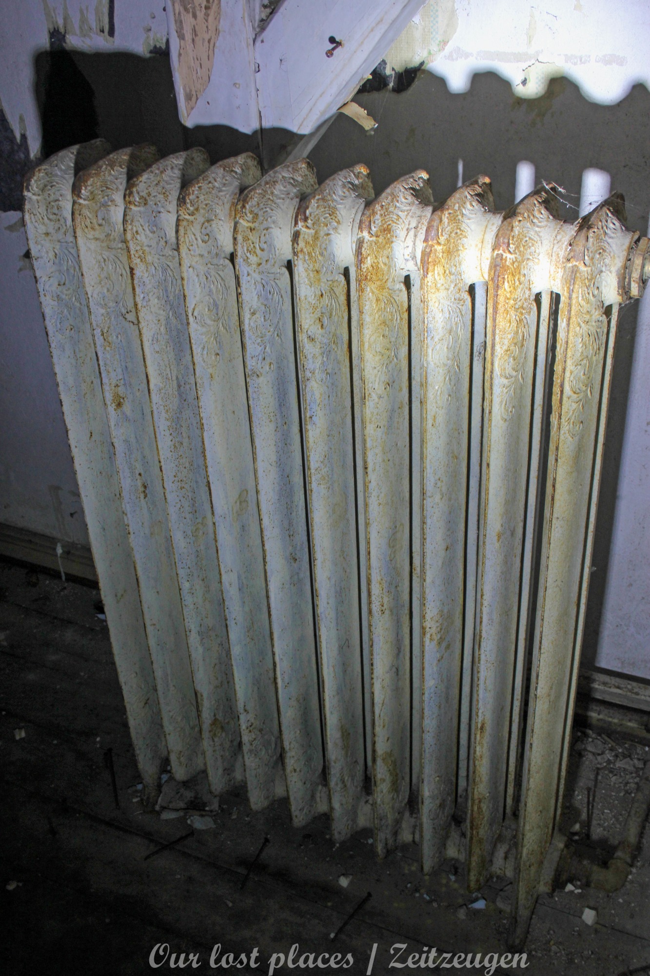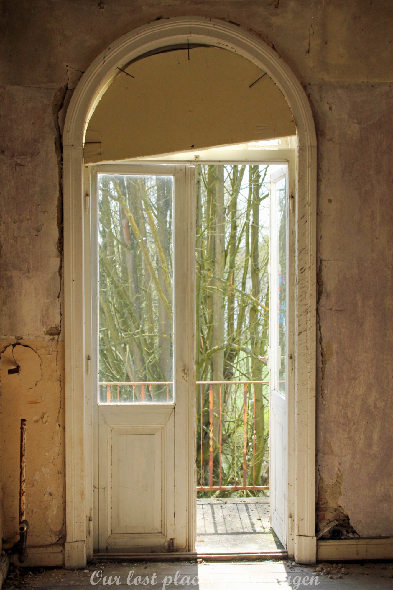 Man muss schon etwas suchen, da das Objekt nicht gerade auf dem Präsentierteller liegt. Gut versteckt in einem ehemaligen Park, der mittlerweile sehr stark zugewuchert ist. Im Sommer machen sich Brombeeren breit (die Freunde jedes Fotografen) und die Bäume sind stark Efeuberankt. Das vermeidliche Schloss ist gar kein Schloss, sondern eine umgebaute Bauernkarte die im 19 Jhs. errichtet wurde. Zu Beginn des 20 Jhs. erwarb ein Berliner Kaufmann, der in den Adelsstand erhoben wurde, mit wenig architektonischem Gespür. Er ließ die Bauernkarte erweitern und zu einem Möchtegern- Prunkschloss umbauen. Schließlich wollte man als Adliger ja auch standesgemäß wohnen. Das Ursprungshaus wurde mit Erkern, Vorbauten, Zinnen und einem Burg ähnlichen Turm versehen. In dem ehemaligen Dorf wurde von den Einheimischen nur noch von dem „Schloss“ gesprochen. Erst ein Besitzerwechsel brachte etwas Ästhetik in das Anwesen. Es wurde ein umfangreicher Park gestaltet. Vor dem Haus wurde mit mehreren Mauern ein terrassenähnlicher Aufbau gestaltet. Davor wurde ein großer Brunnen mit vielen Figuren errichtet, aus denen früher Wasser floss. Es gab sogar eine Allee, die vom Haus bis zum angrenzenden See führte. Das Haus steht seit Jahrzehnten leer und wird dadurch nicht besser.