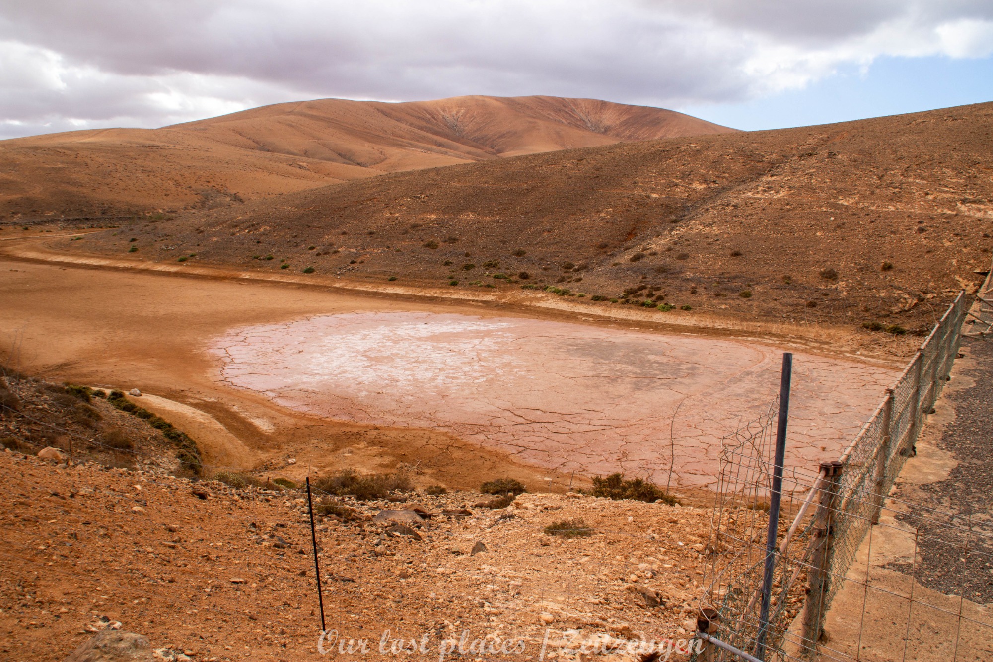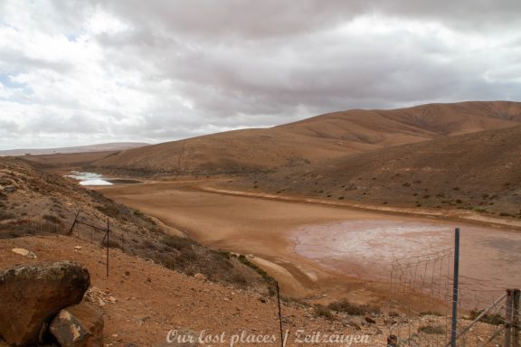 Nachdem die Pläne fertig waren, wurde Anfang der 1950iger mit der Errichtung des Staudammes begonnen, der ca. 2 Km lang, 200 m breit ist und eine maximale Tiefe von 5 m aufweist. Die Kapazität ist 210.000 Kubikmeter, die Staumauer rund 40 m hoch. Wie üblich in dem Land, arbeitet die Verwaltung zwar sehr langsam, dafür aber besonders akribisch ( gut, da kennen wir auch diverse von), so wurden die gesamten Erstellungskosten dokumentiert. Der Spaß kostete damals 1,3 Mio. Pesetas. Voll wurde das Staubecken jedoch nie. Es verlandete sofort. Nun ja, mit über 300 Sonnenstunden im Jahr und dem geringsten Niederschlag in dem Gebiet hätte man sich das eventuell vorher ausmalen können.