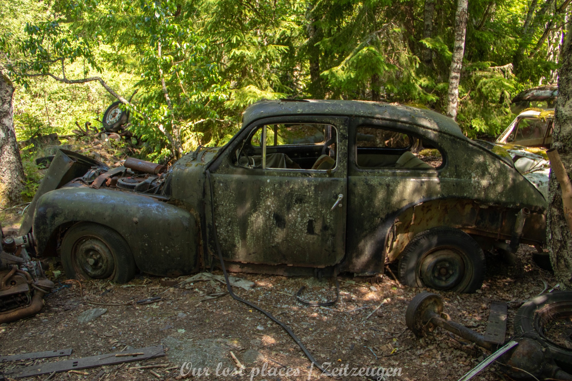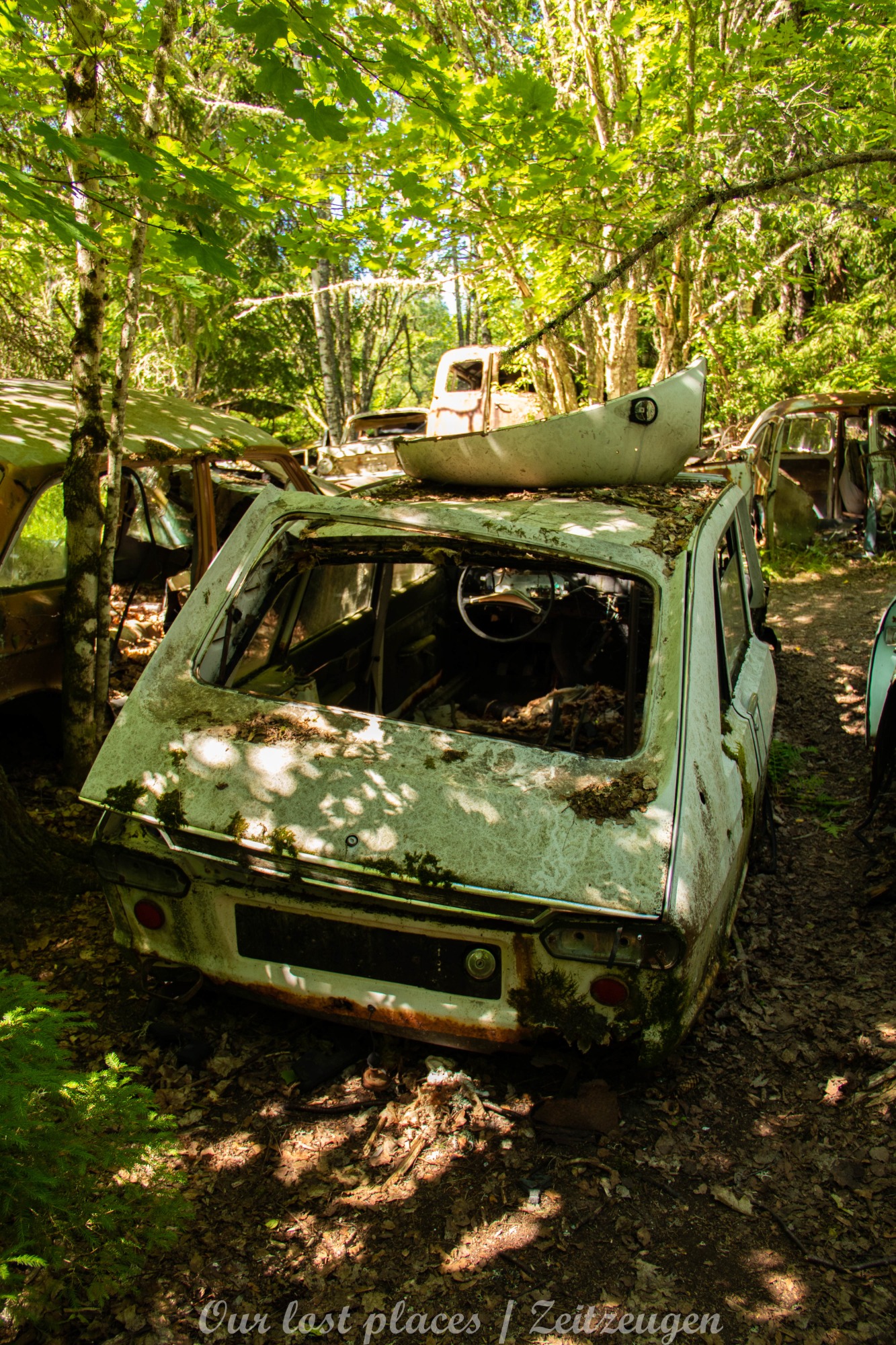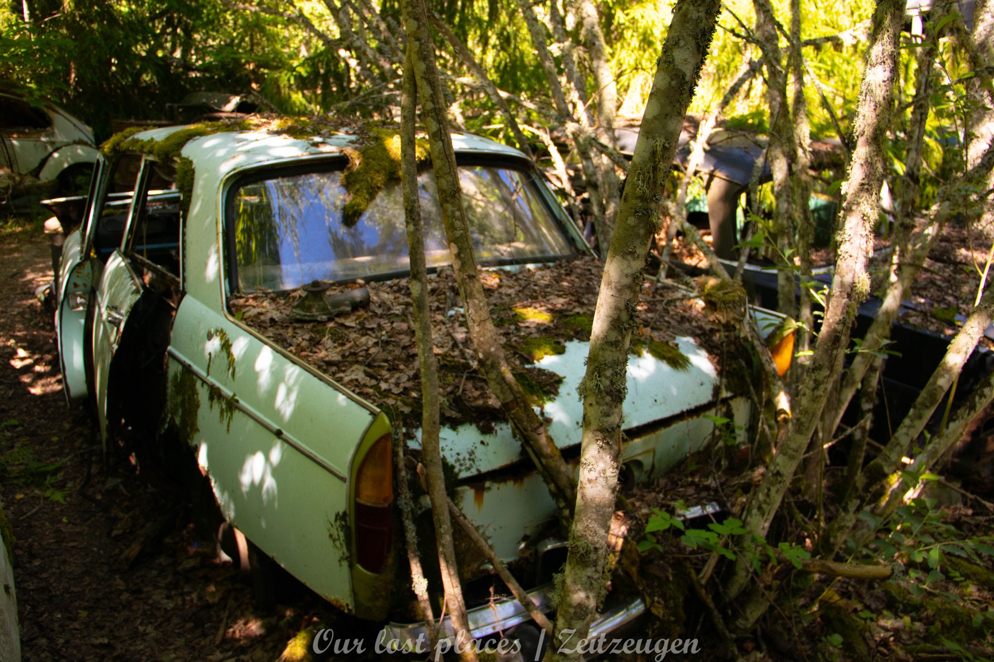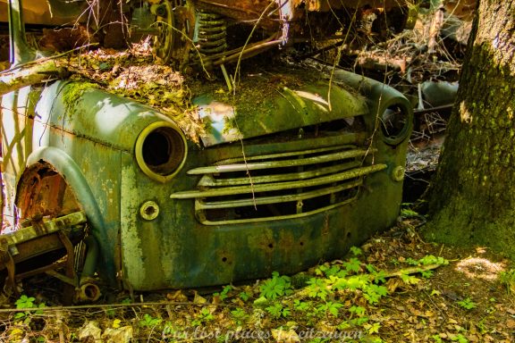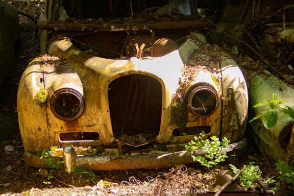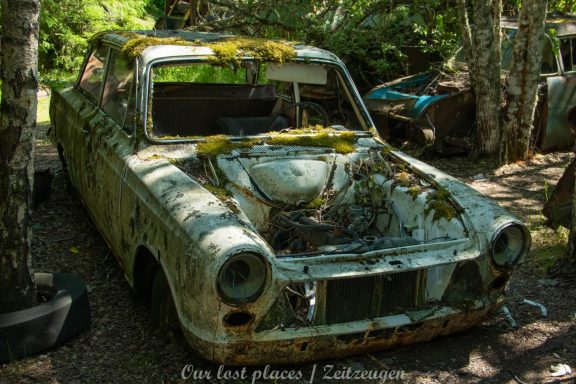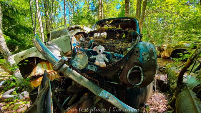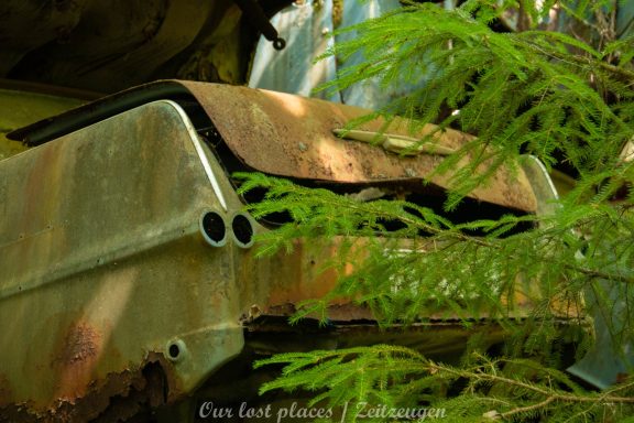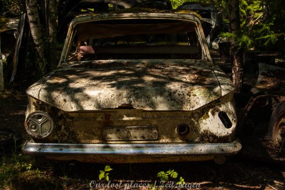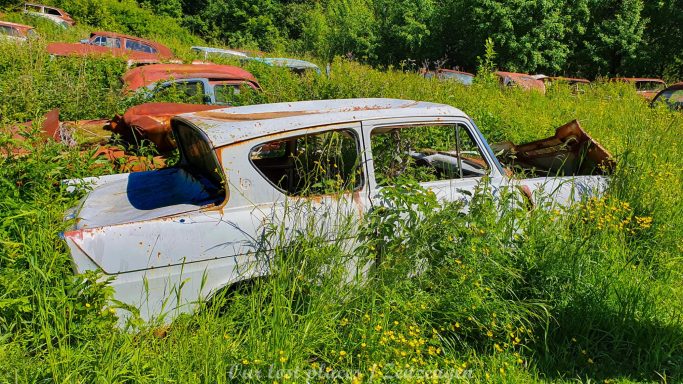 Es handelt sich hier um einen ehemaligen Schrottplatz, der vor vielen Jahren aufgegeben wurde. Nach dem zweiten Weltkrieg ging es dem Nachbarland wirtschaftlich sehr schlecht, so dass es Einfuhrzölle auf Autos einführte. Die Straßen an der Ländergrenze wurden streng kontrolliert. Autoteile blieben jedoch zollfrei, sodass Käufer in das Nachbarland fuhren um hier günstig Autos zu kaufen. Entweder montierten sie ihre mitgebrachten Autokennzeichen auf die Fahrzeuge und fuhren wieder Heim, oder das Fahrzeug wurde in drei Teile demontiert und einzeln über die Grenze gebracht. Aus dieser Situation, entwickelten zwei Brüder eine Geschäftsidee. Sie verkauften zerlegt Fahrzeuge an die Kunden aus dem Nachbarland. 1956 gründeten sie eine Autowerkstatt, direkt neben ihrem Elternhaus. Die umliegenden Felder wurden bald zu einem Schrottplatz umfunktioniert. Das Geschäft lief so gut, dass sich in Spitzenzeiten bis zu 2000 Fahrzeuge auf dem Gelände befanden. Neben der Demontage von Fahrzeugen und Überführung in das Nachbarland, lief auch der Handel mit Autoteilen, die sich Kunden aus den alten Fahrzeugen ausbauen konnten, sehr gut. Ab dem Jahr 1969 erholte sich die Wirtschaft im Nachbarland wieder. Ende der 1970iger wurden die Zollbestimmungen geändert, so dass das Geschäft der Brüder dadurch stark zurück ging. Im Jahr 1980 verloren sie die Lizenz für den Schrottplatz. Aufräumarbeiten? Fehlanzeige. So verblieben rund 800 Fahrzeuge auf dem Gelände.