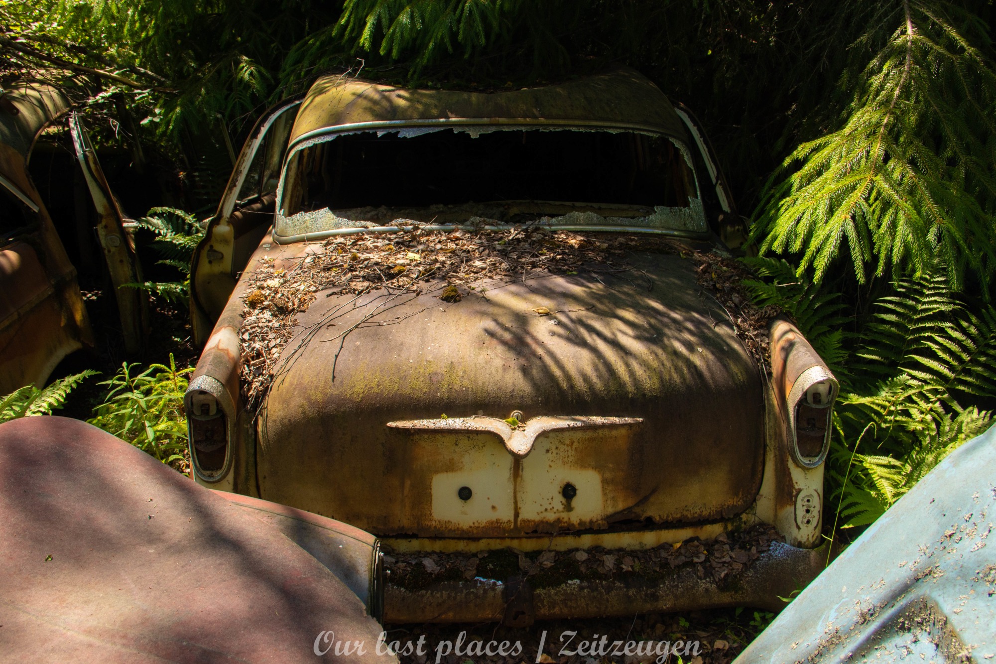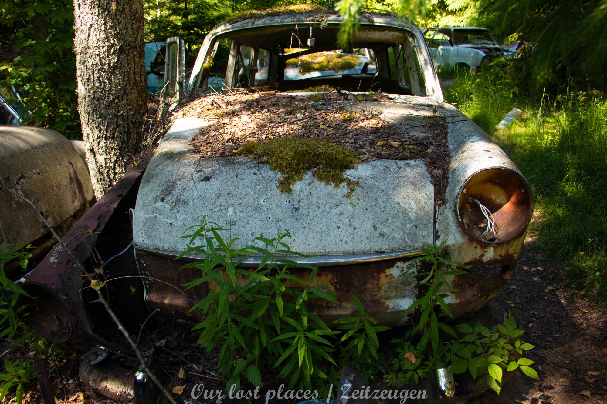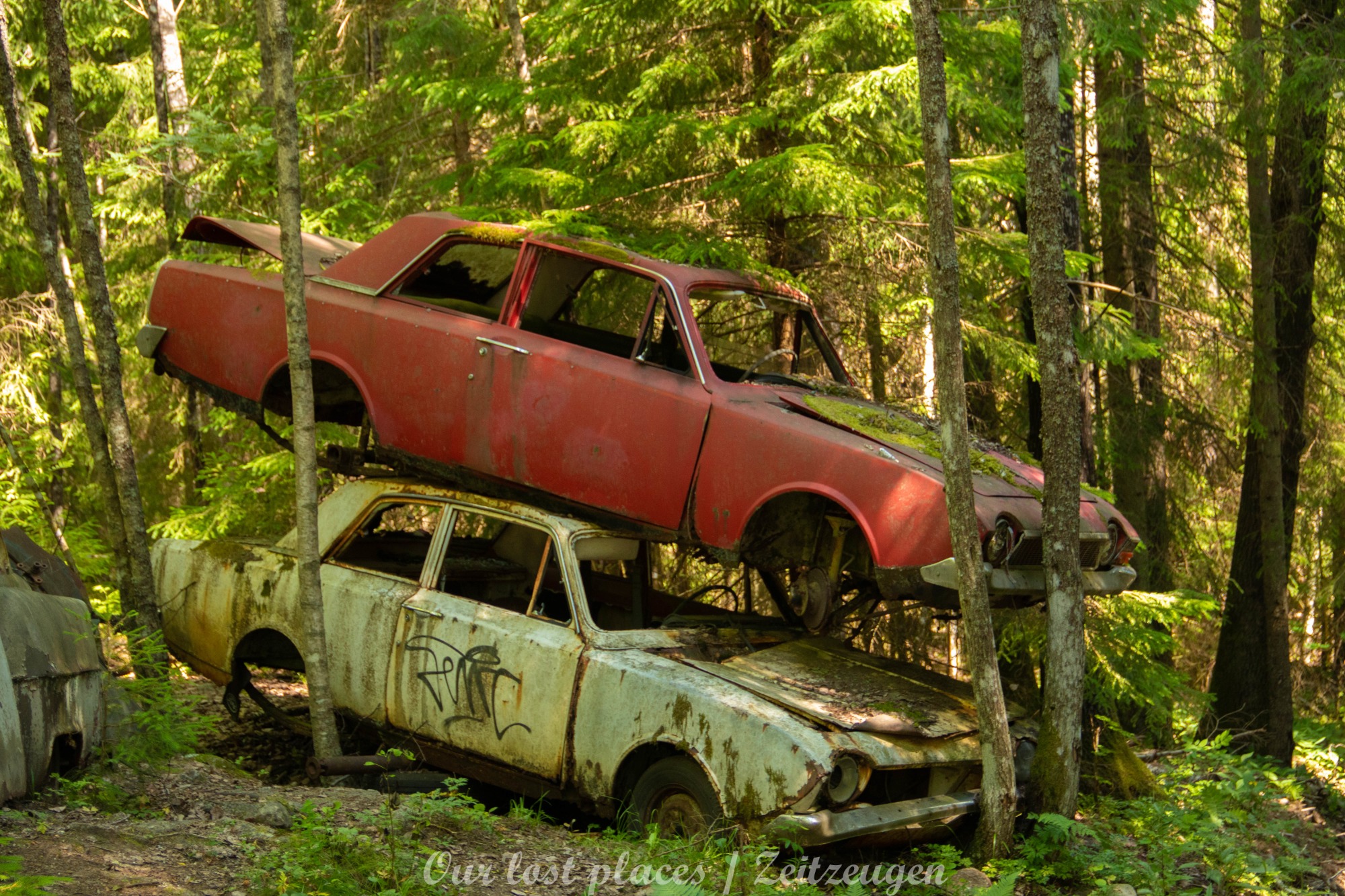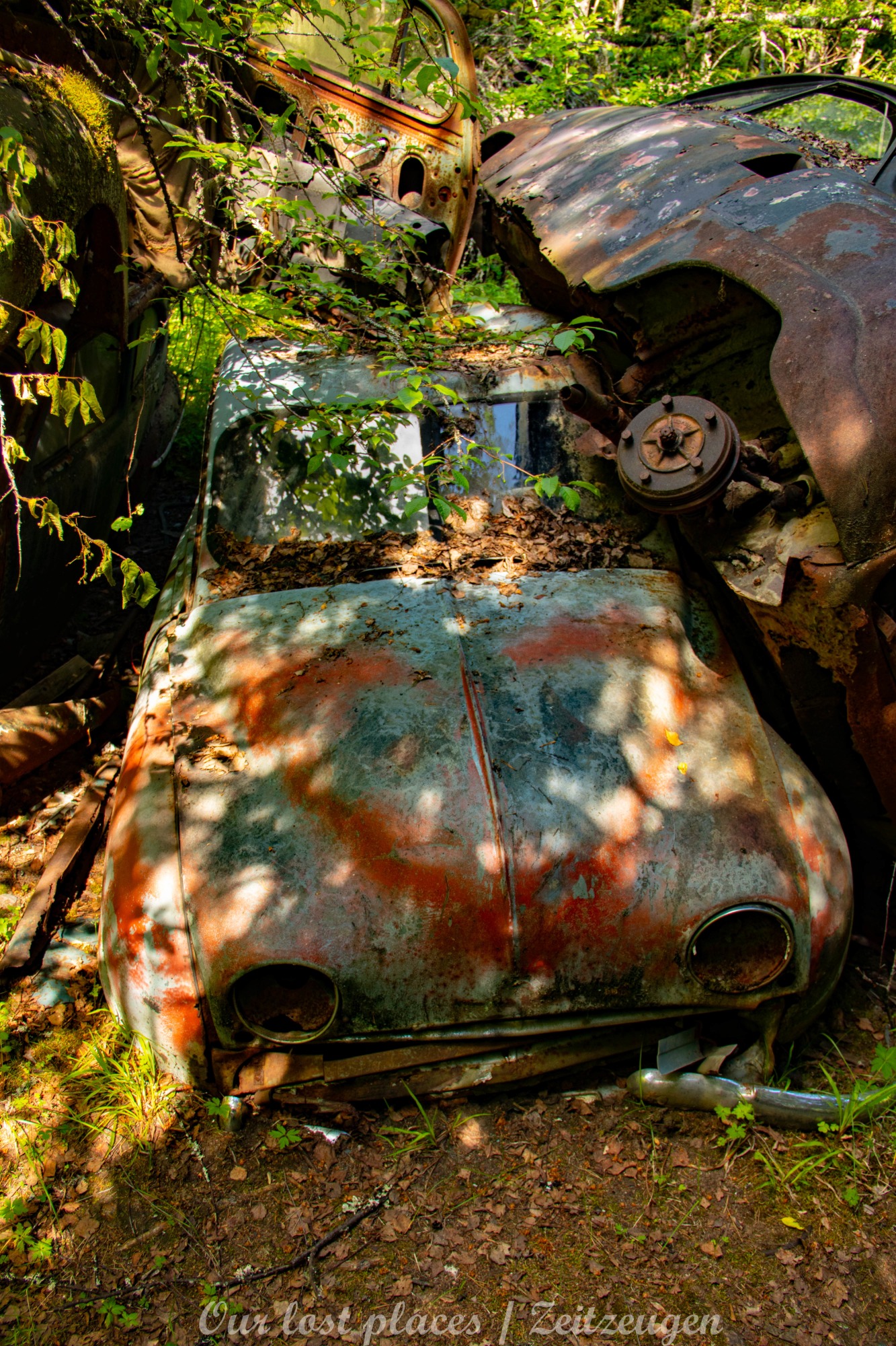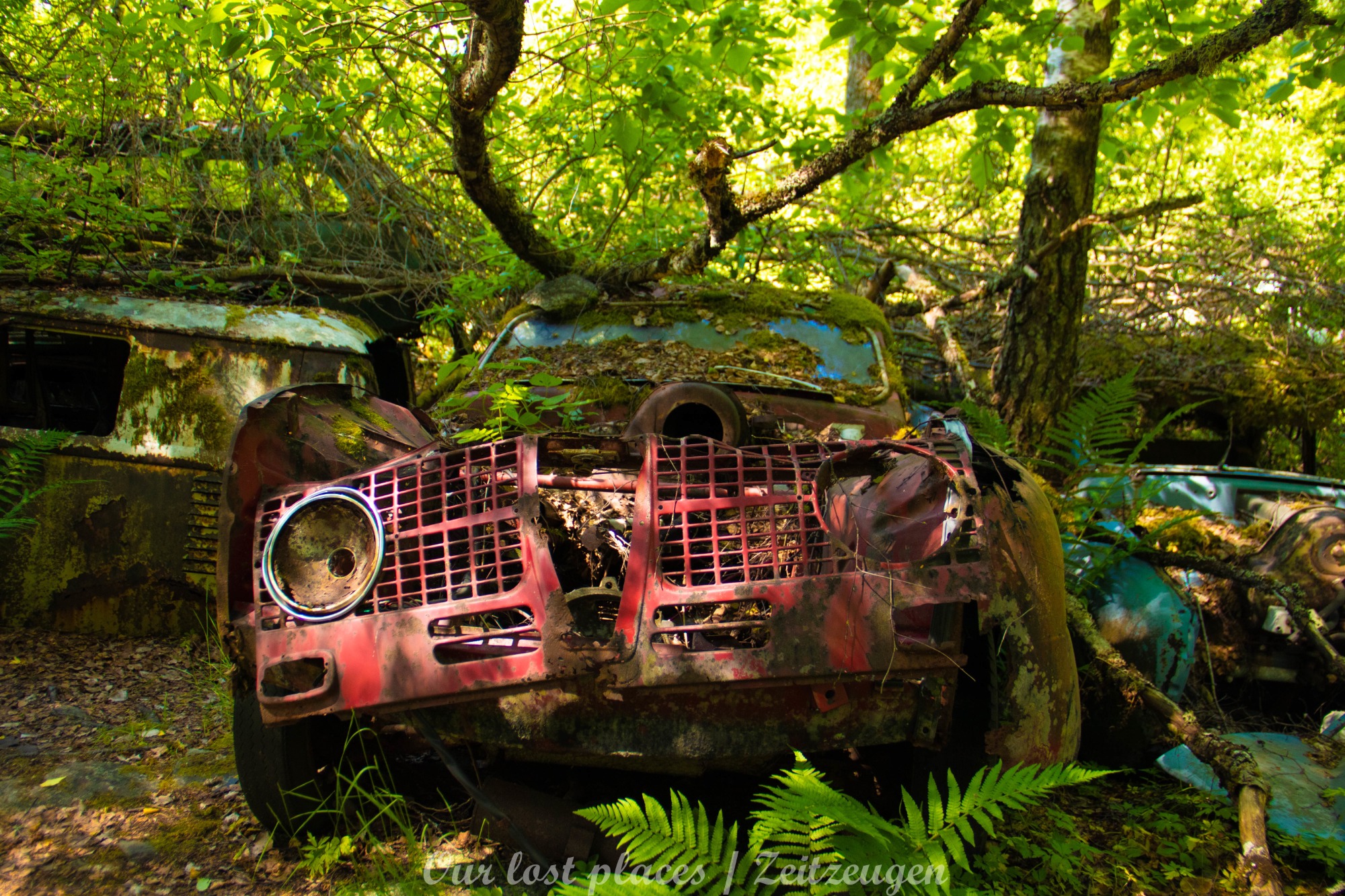 Es handelt sich hier um einen ehemaligen Schrottplatz, der vor vielen Jahren aufgegeben wurde. Nach dem zweiten Weltkrieg ging es dem Nachbarland wirtschaftlich sehr schlecht, so dass es Einfuhrzölle auf Autos einführte. Die Straßen an der Ländergrenze wurden streng kontrolliert. Autoteile blieben jedoch zollfrei, sodass Käufer in das Nachbarland fuhren um hier günstig Autos zu kaufen. Entweder montierten sie ihre mitgebrachten Autokennzeichen auf die Fahrzeuge und fuhren wieder Heim, oder das Fahrzeug wurde in drei Teile demontiert und einzeln über die Grenze gebracht. Aus dieser Situation, entwickelten zwei Brüder eine Geschäftsidee. Sie verkauften zerlegt Fahrzeuge an die Kunden aus dem Nachbarland. 1956 gründeten sie eine Autowerkstatt, direkt neben ihrem Elternhaus. Die umliegenden Felder wurden bald zu einem Schrottplatz umfunktioniert. Das Geschäft lief so gut, dass sich in Spitzenzeiten bis zu 2000 Fahrzeuge auf dem Gelände befanden. Neben der Demontage von Fahrzeugen und Überführung in das Nachbarland, lief auch der Handel mit Autoteilen, die sich Kunden aus den alten Fahrzeugen ausbauen konnten, sehr gut. Ab dem Jahr 1969 erholte sich die Wirtschaft im Nachbarland wieder. Ende der 1970iger wurden die Zollbestimmungen geändert, so dass das Geschäft der Brüder dadurch stark zurück ging. Im Jahr 1980 verloren sie die Lizenz für den Schrottplatz. Aufräumarbeiten? Fehlanzeige. So verblieben rund 800 Fahrzeuge auf dem Gelände.