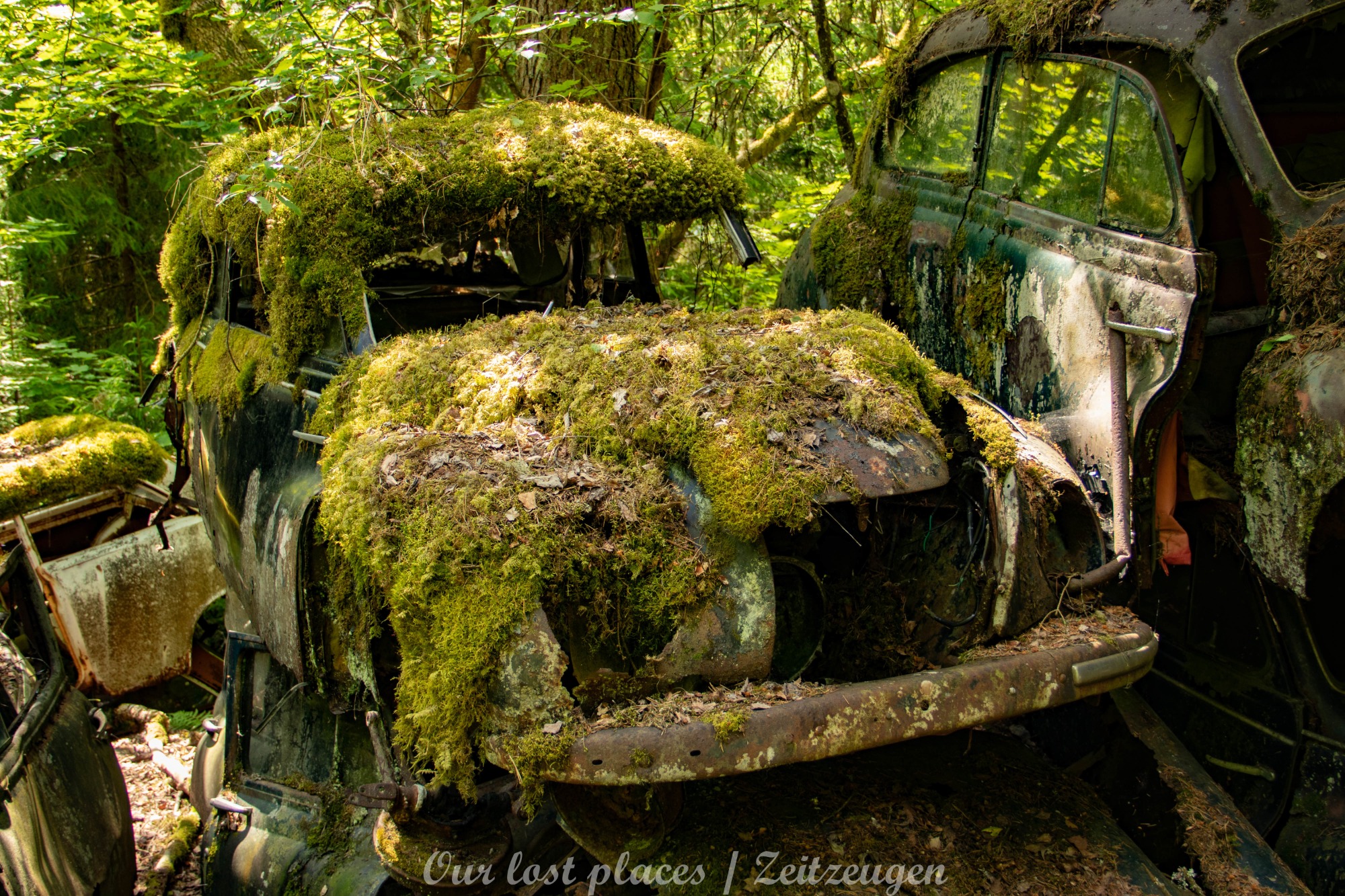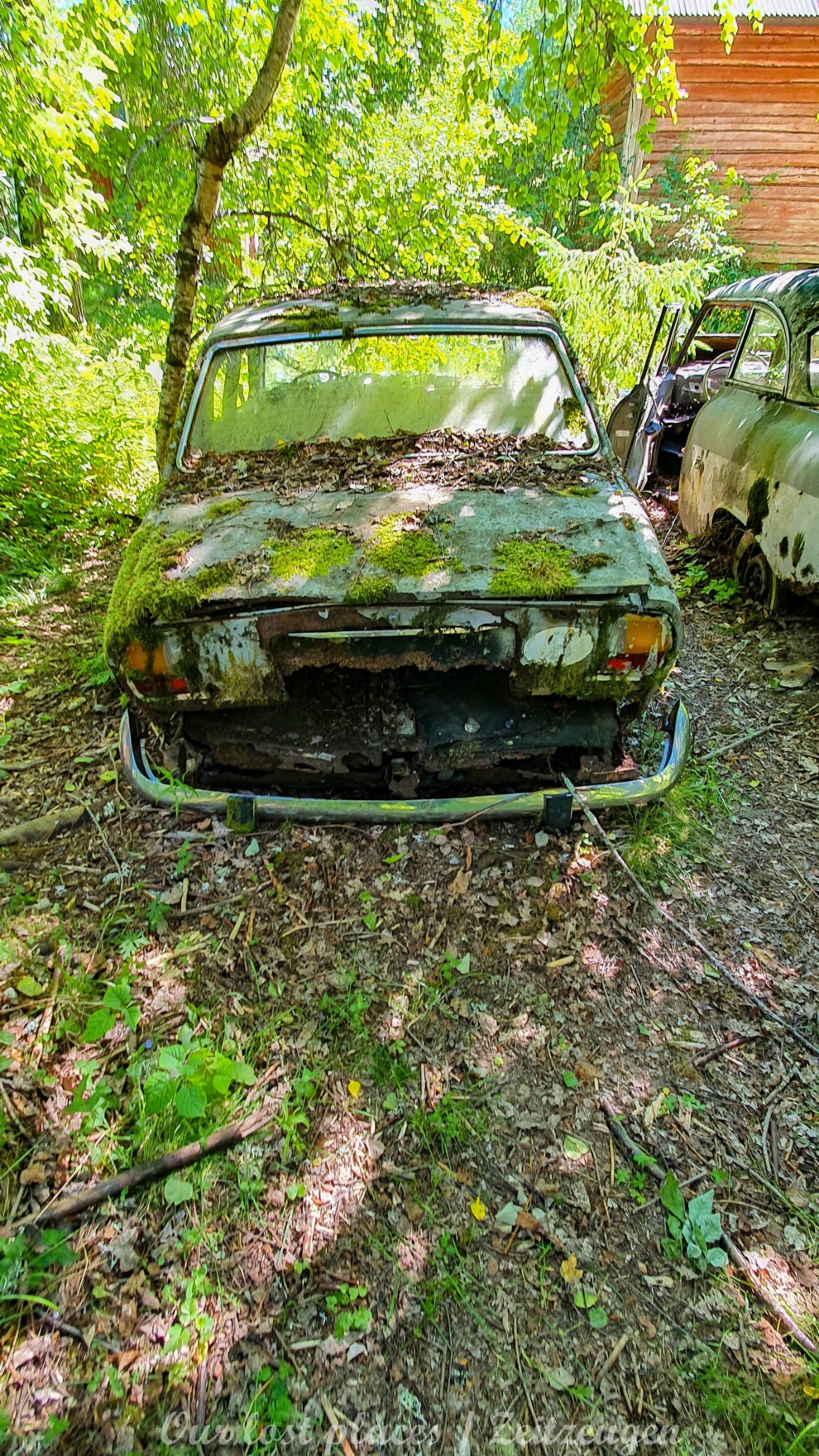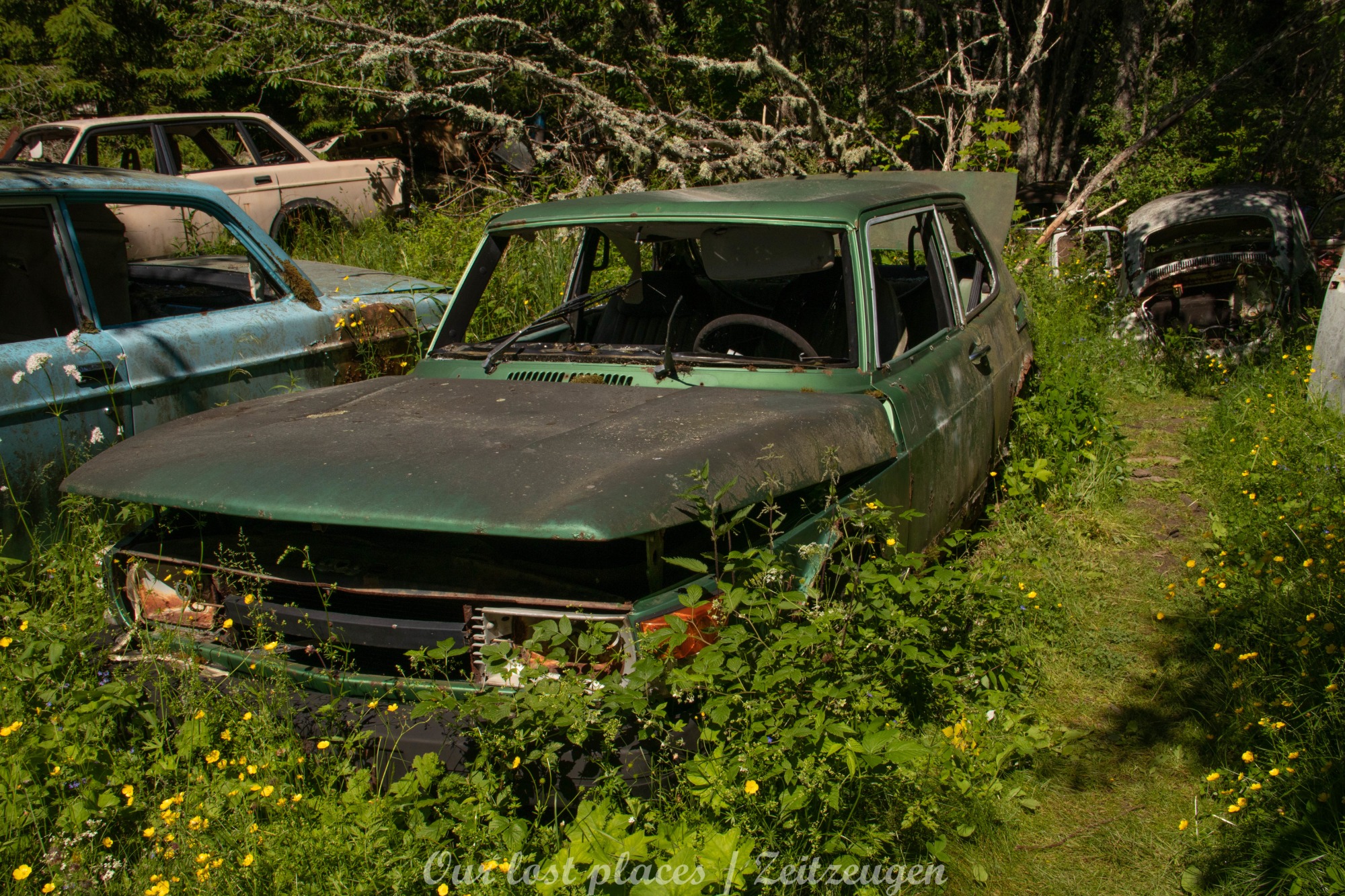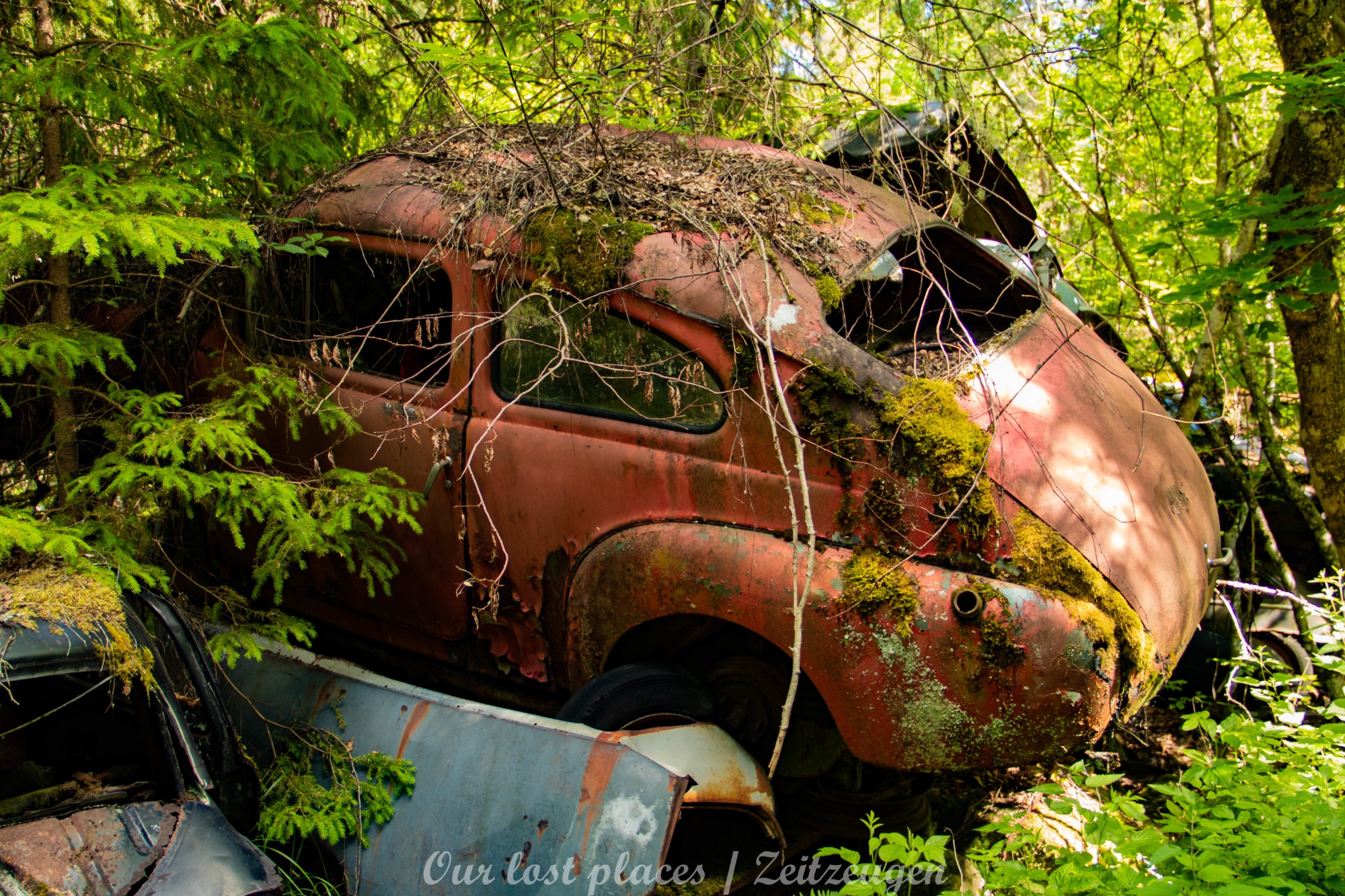 Es handelt sich hier um einen ehemaligen Schrottplatz, der vor vielen Jahren aufgegeben wurde. Nach dem zweiten Weltkrieg ging es dem Nachbarland wirtschaftlich sehr schlecht, so dass es Einfuhrzölle auf Autos einführte. Die Straßen an der Ländergrenze wurden streng kontrolliert. Autoteile blieben jedoch zollfrei, sodass Käufer in das Nachbarland fuhren um hier günstig Autos zu kaufen. Entweder montierten sie ihre mitgebrachten Autokennzeichen auf die Fahrzeuge und fuhren wieder Heim, oder das Fahrzeug wurde in drei Teile demontiert und einzeln über die Grenze gebracht. Aus dieser Situation, entwickelten zwei Brüder eine Geschäftsidee. Sie verkauften zerlegt Fahrzeuge an die Kunden aus dem Nachbarland. 1956 gründeten sie eine Autowerkstatt, direkt neben ihrem Elternhaus. Die umliegenden Felder wurden bald zu einem Schrottplatz umfunktioniert. Das Geschäft lief so gut, dass sich in Spitzenzeiten bis zu 2000 Fahrzeuge auf dem Gelände befanden. Neben der Demontage von Fahrzeugen und Überführung in das Nachbarland, lief auch der Handel mit Autoteilen, die sich Kunden aus den alten Fahrzeugen ausbauen konnten, sehr gut. Ab dem Jahr 1969 erholte sich die Wirtschaft im Nachbarland wieder. Ende der 1970iger wurden die Zollbestimmungen geändert, so dass das Geschäft der Brüder dadurch stark zurück ging. Im Jahr 1980 verloren sie die Lizenz für den Schrottplatz. Aufräumarbeiten? Fehlanzeige. So verblieben rund 800 Fahrzeuge auf dem Gelände.