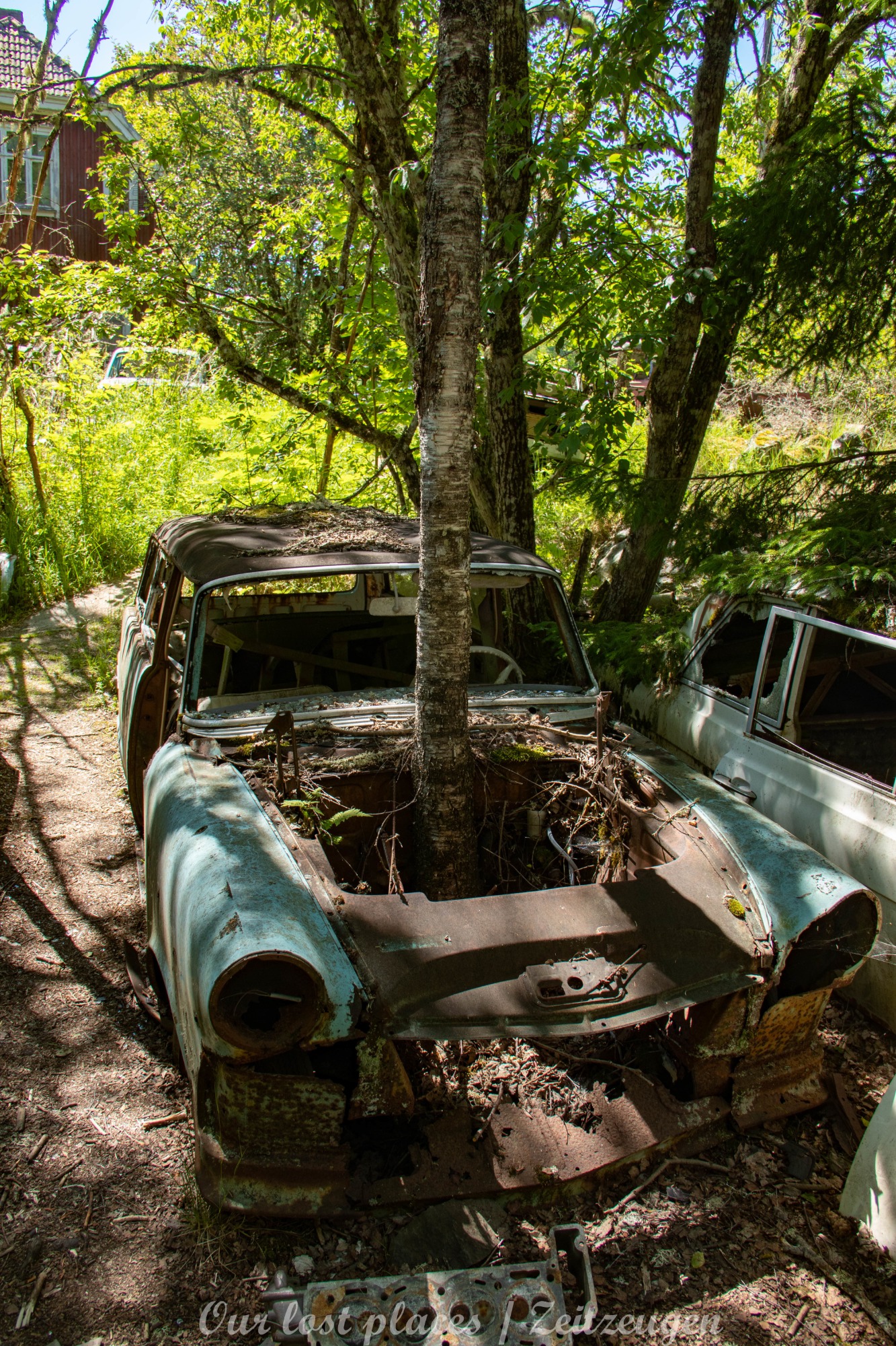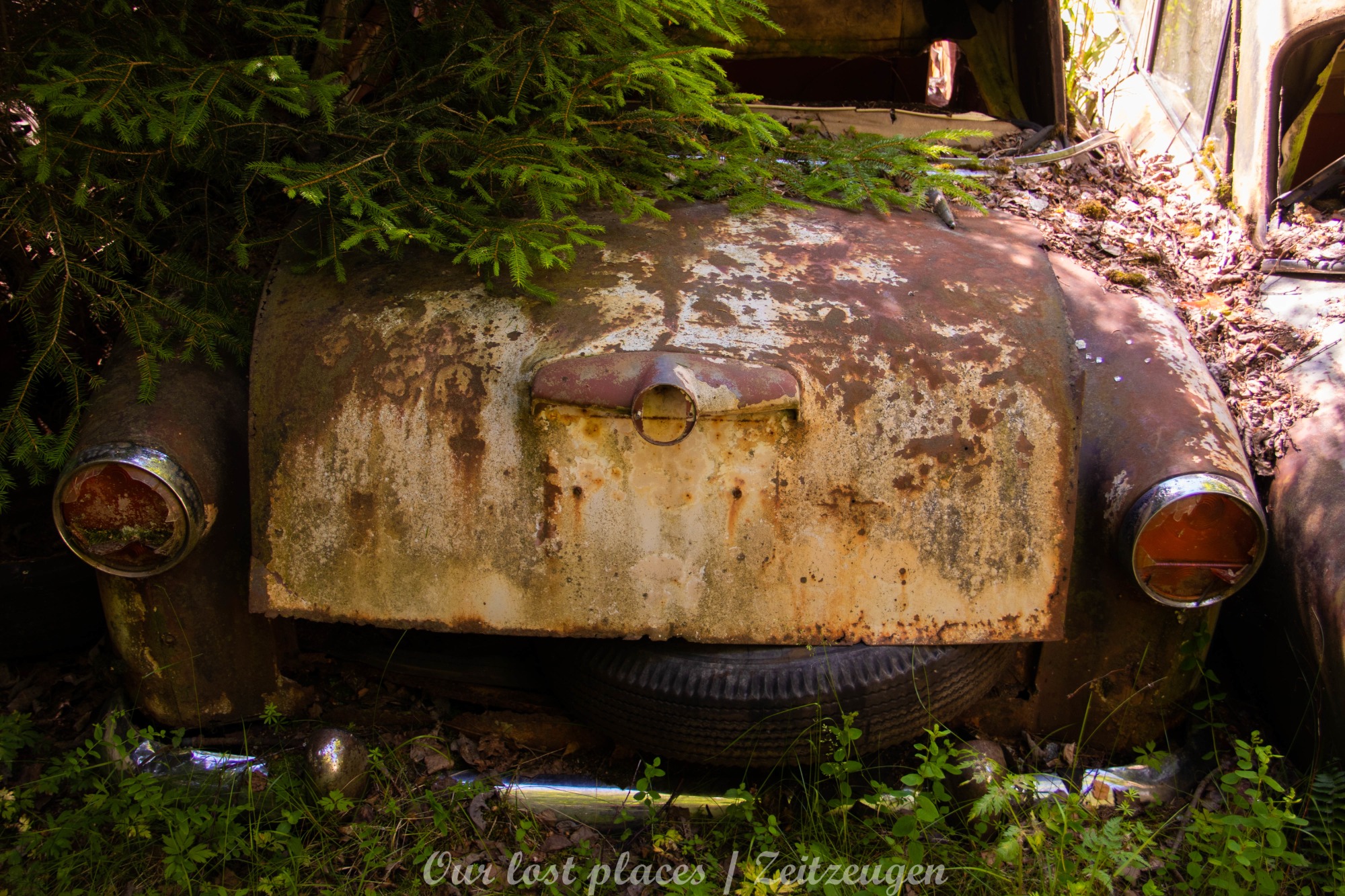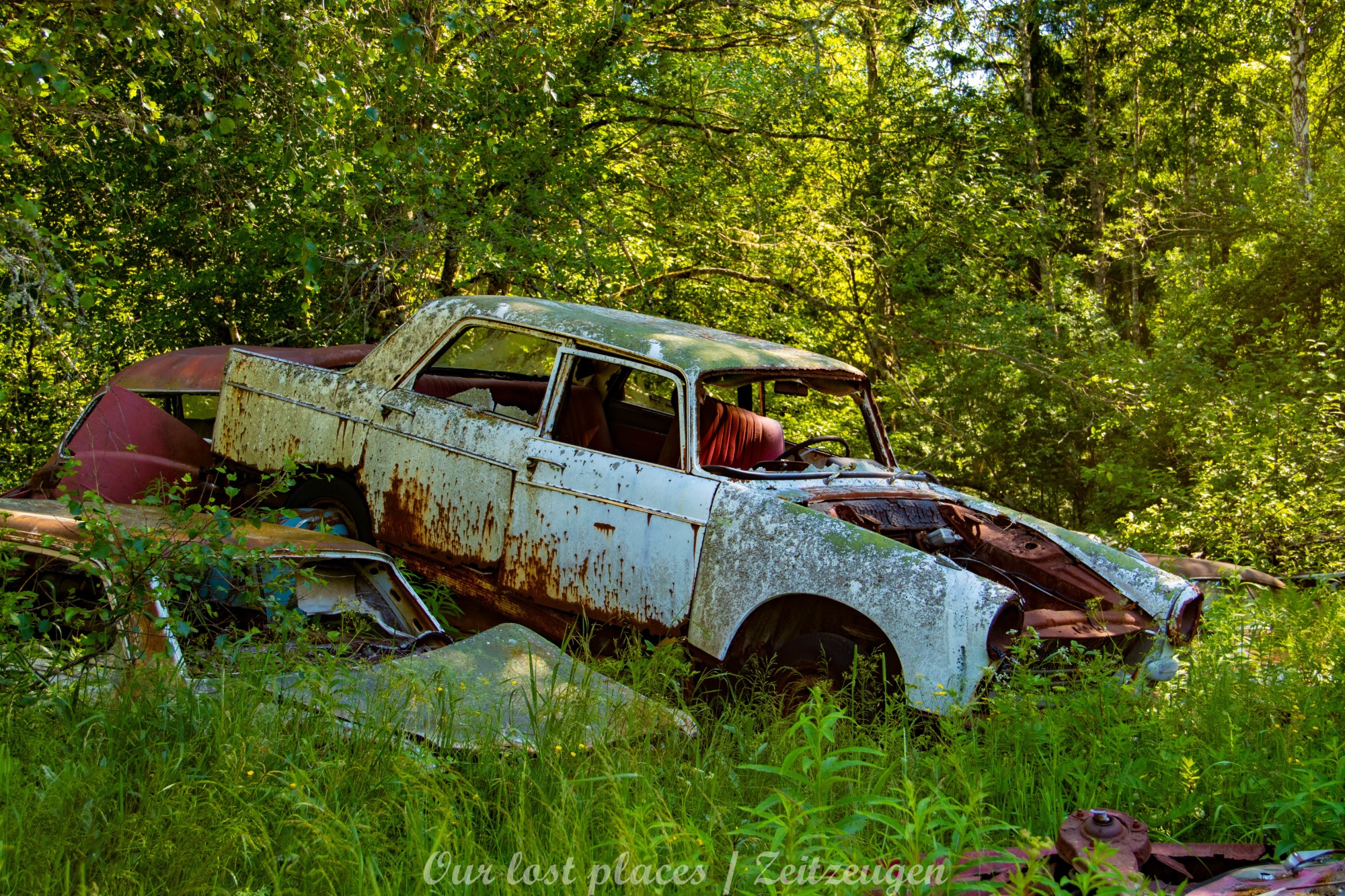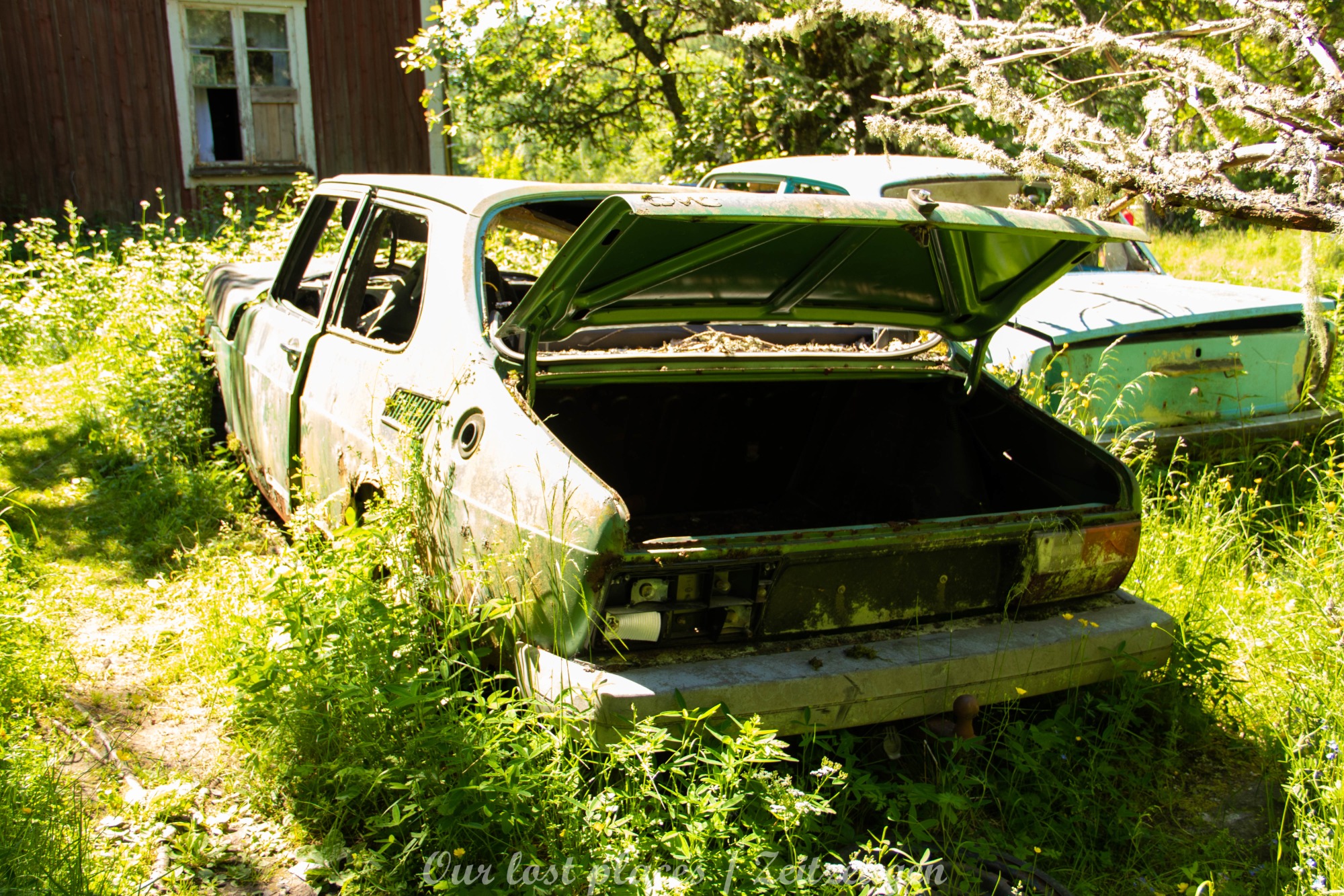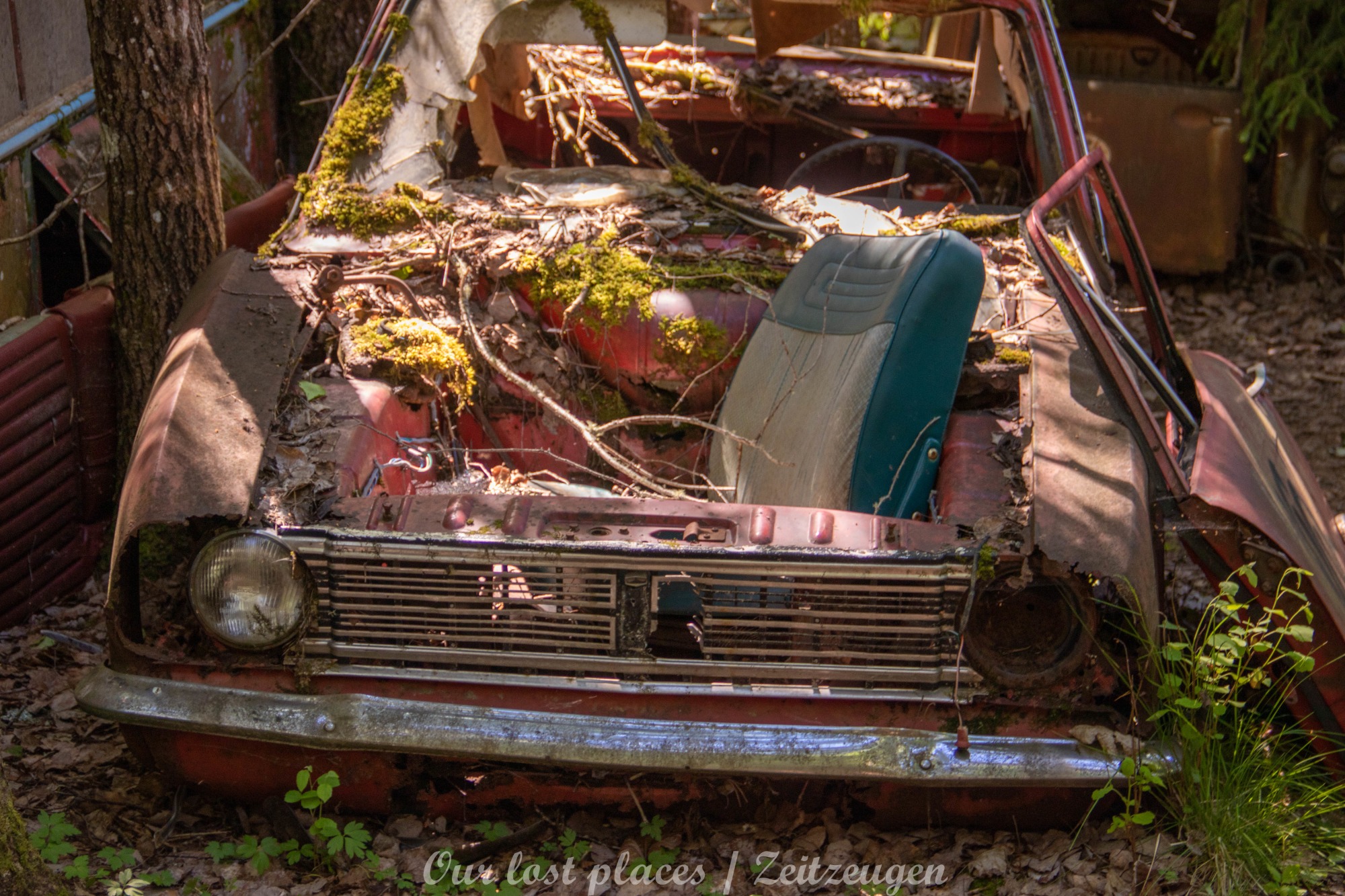 Es handelt sich hier um einen ehemaligen Schrottplatz, der vor vielen Jahren aufgegeben wurde. Nach dem zweiten Weltkrieg ging es dem Nachbarland wirtschaftlich sehr schlecht, so dass es Einfuhrzölle auf Autos einführte. Die Straßen an der Ländergrenze wurden streng kontrolliert. Autoteile blieben jedoch zollfrei, sodass Käufer in das Nachbarland fuhren um hier günstig Autos zu kaufen. Entweder montierten sie ihre mitgebrachten Autokennzeichen auf die Fahrzeuge und fuhren wieder Heim, oder das Fahrzeug wurde in drei Teile demontiert und einzeln über die Grenze gebracht. Aus dieser Situation, entwickelten zwei Brüder eine Geschäftsidee. Sie verkauften zerlegt Fahrzeuge an die Kunden aus dem Nachbarland. 1956 gründeten sie eine Autowerkstatt, direkt neben ihrem Elternhaus. Die umliegenden Felder wurden bald zu einem Schrottplatz umfunktioniert. Das Geschäft lief so gut, dass sich in Spitzenzeiten bis zu 2000 Fahrzeuge auf dem Gelände befanden. Neben der Demontage von Fahrzeugen und Überführung in das Nachbarland, lief auch der Handel mit Autoteilen, die sich Kunden aus den alten Fahrzeugen ausbauen konnten, sehr gut. Ab dem Jahr 1969 erholte sich die Wirtschaft im Nachbarland wieder. Ende der 1970iger wurden die Zollbestimmungen geändert, so dass das Geschäft der Brüder dadurch stark zurück ging. Im Jahr 1980 verloren sie die Lizenz für den Schrottplatz. Aufräumarbeiten? Fehlanzeige. So verblieben rund 800 Fahrzeuge auf dem Gelände.