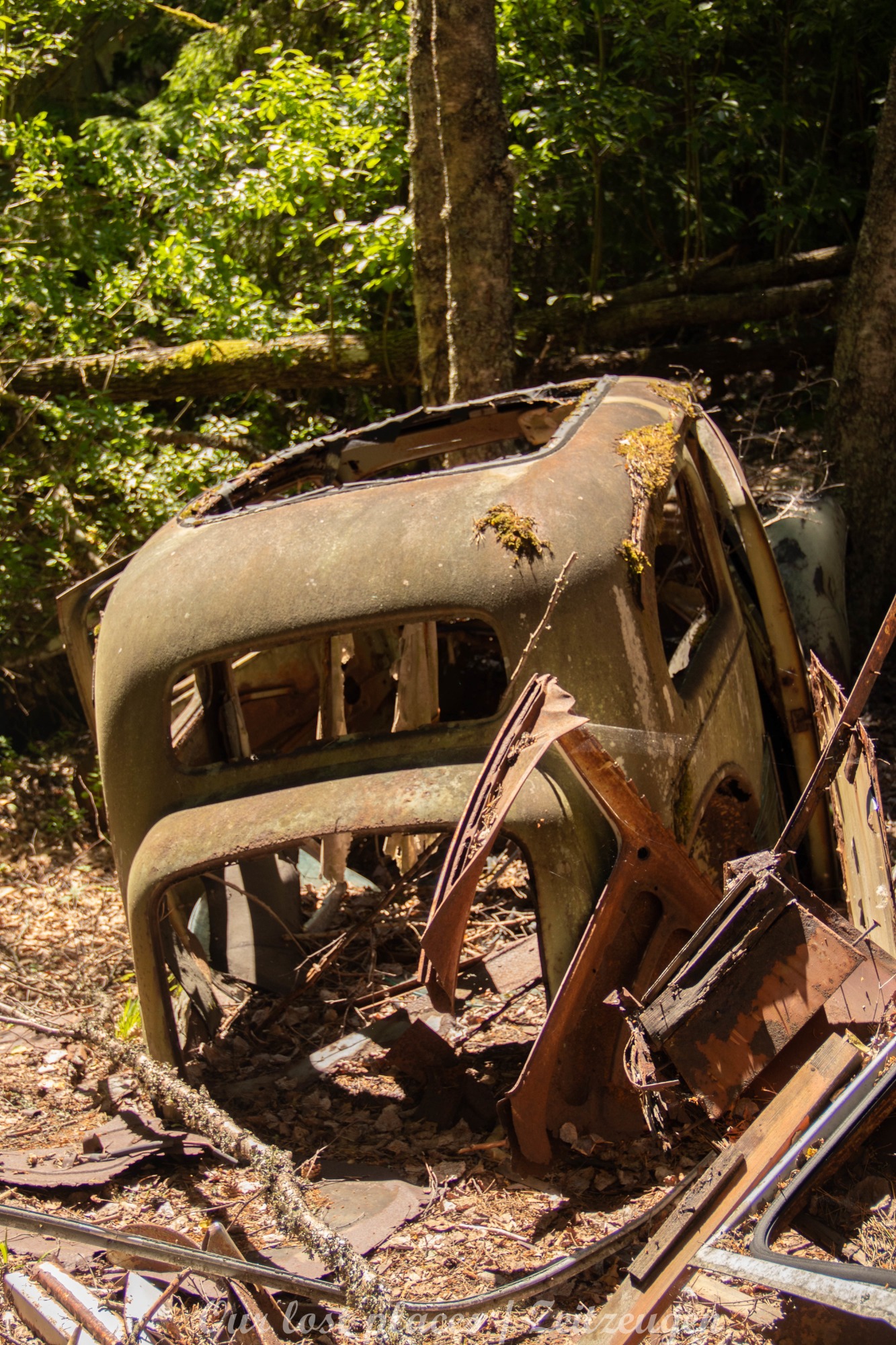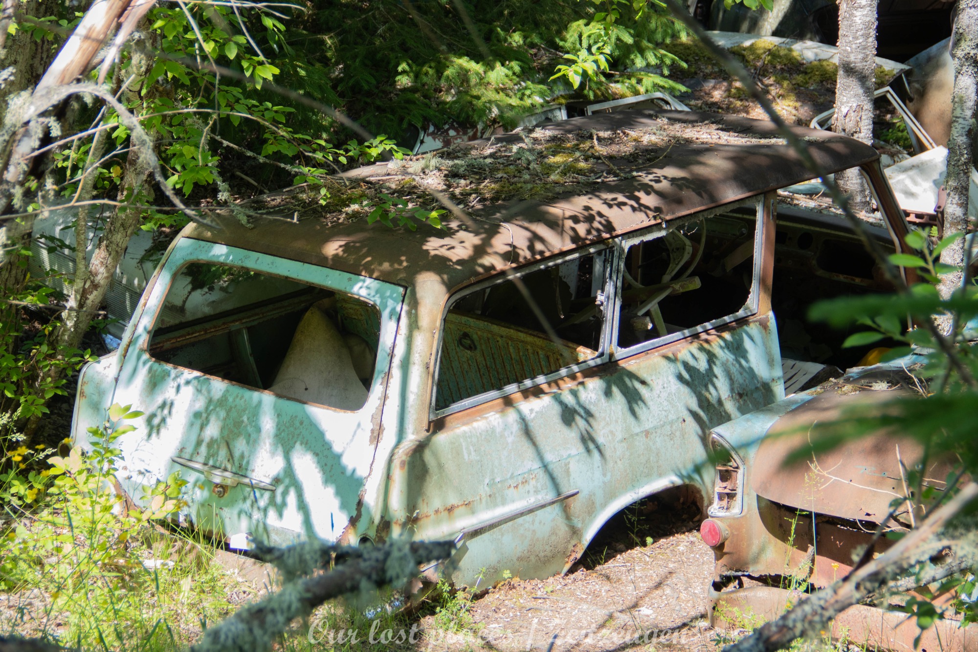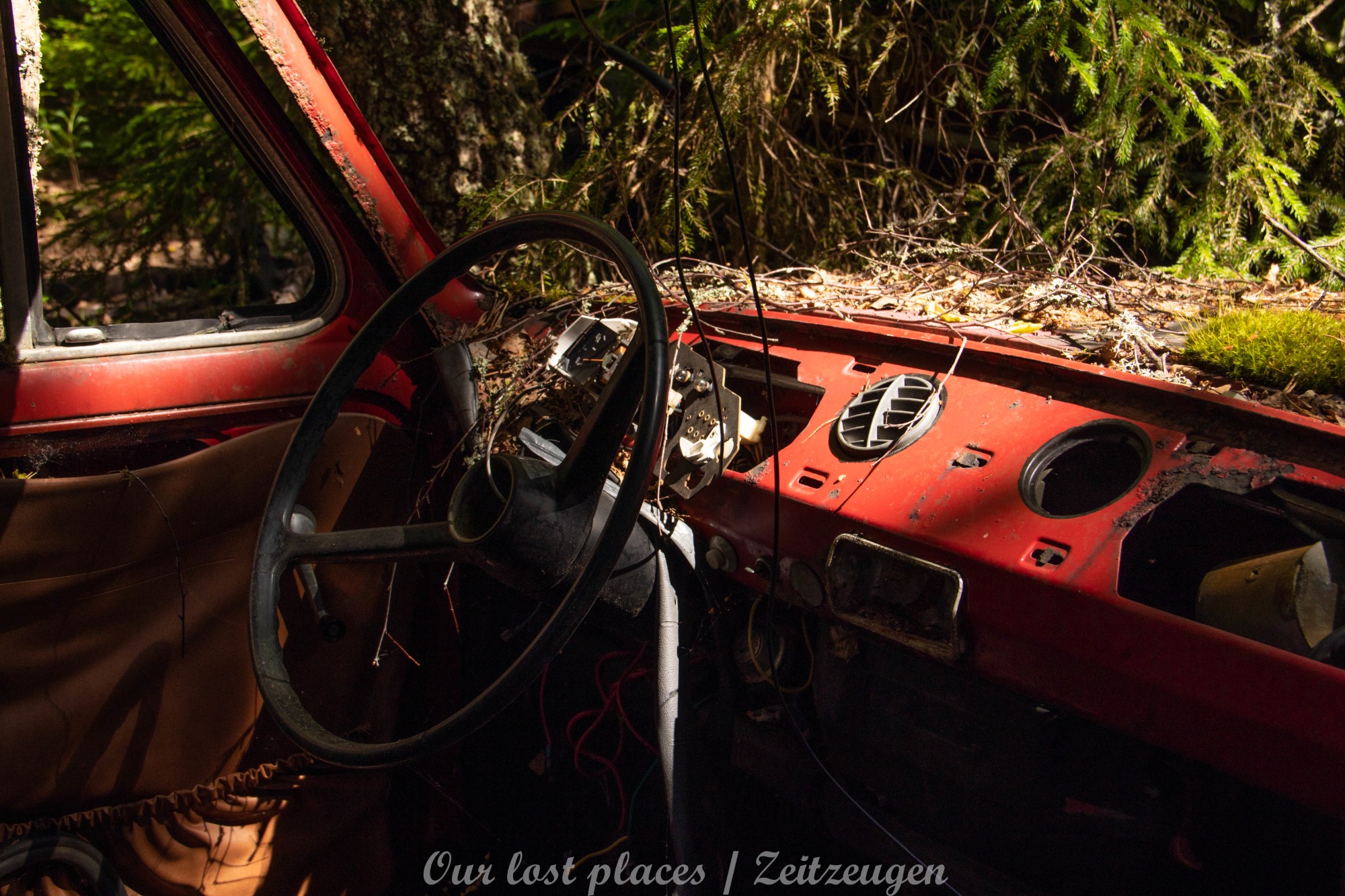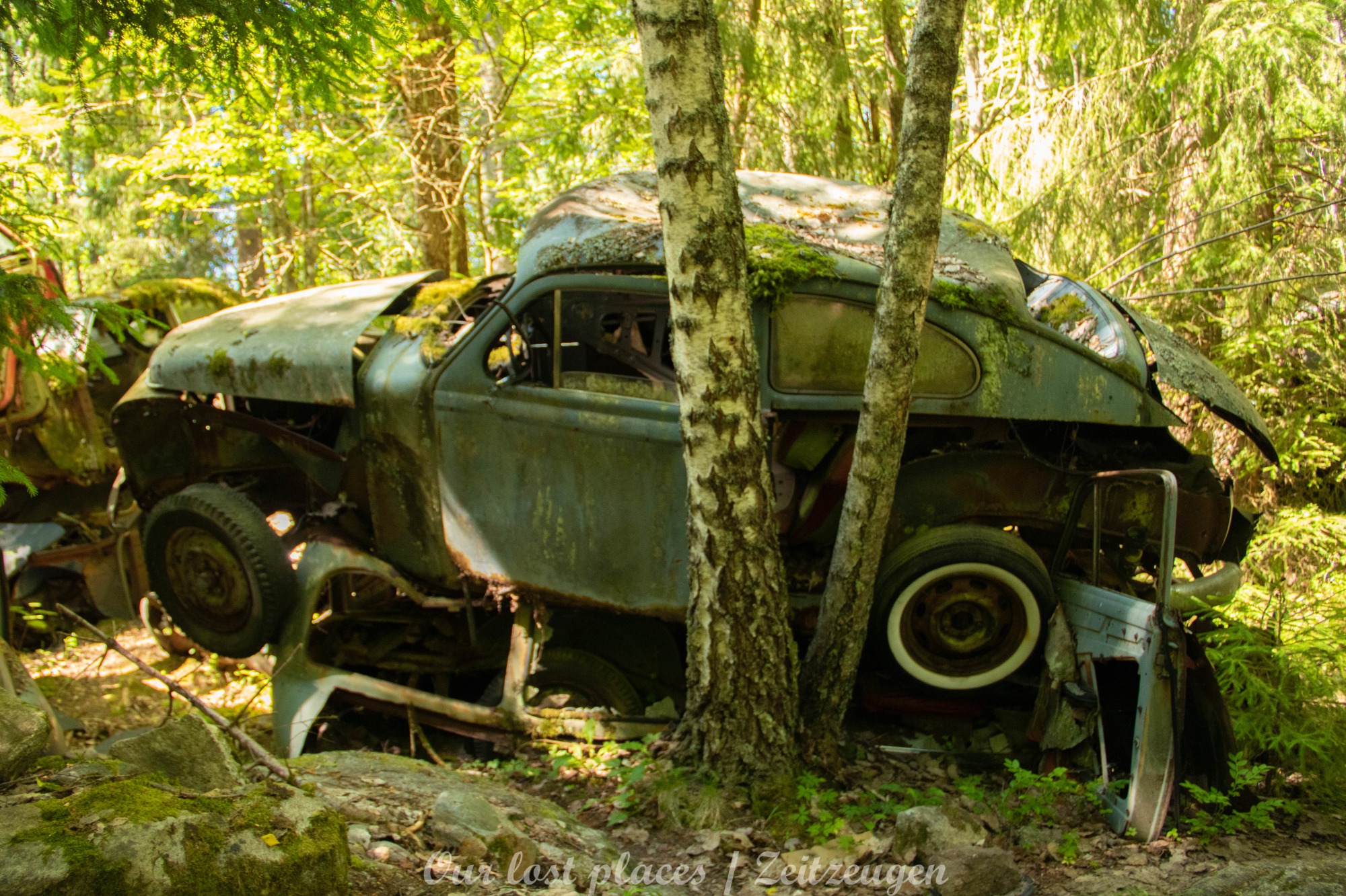Es handelt sich hier um einen ehemaligen Schrottplatz, der vor vielen Jahren aufgegeben wurde. Nach dem zweiten Weltkrieg ging es dem Nachbarland wirtschaftlich sehr schlecht, so dass es Einfuhrzölle auf Autos einführte. Die Straßen an der Ländergrenze wurden streng kontrolliert. Autoteile blieben jedoch zollfrei, sodass Käufer in das Nachbarland fuhren um hier günstig Autos zu kaufen. Entweder montierten sie ihre mitgebrachten Autokennzeichen auf die Fahrzeuge und fuhren wieder Heim, oder das Fahrzeug wurde in drei Teile demontiert und einzeln über die Grenze gebracht. Aus dieser Situation, entwickelten zwei Brüder eine Geschäftsidee. Sie verkauften zerlegt Fahrzeuge an die Kunden aus dem Nachbarland. 1956 gründeten sie eine Autowerkstatt, direkt neben ihrem Elternhaus. Die umliegenden Felder wurden bald zu einem Schrottplatz umfunktioniert. Das Geschäft lief so gut, dass sich in Spitzenzeiten bis zu 2000 Fahrzeuge auf dem Gelände befanden. Neben der Demontage von Fahrzeugen und Überführung in das Nachbarland, lief auch der Handel mit Autoteilen, die sich Kunden aus den alten Fahrzeugen ausbauen konnten, sehr gut. Ab dem Jahr 1969 erholte sich die Wirtschaft im Nachbarland wieder. Ende der 1970iger wurden die Zollbestimmungen geändert, so dass das Geschäft der Brüder dadurch stark zurück ging. Im Jahr 1980 verloren sie die Lizenz für den Schrottplatz. Aufräumarbeiten? Fehlanzeige. So verblieben rund 800 Fahrzeuge auf dem Gelände.