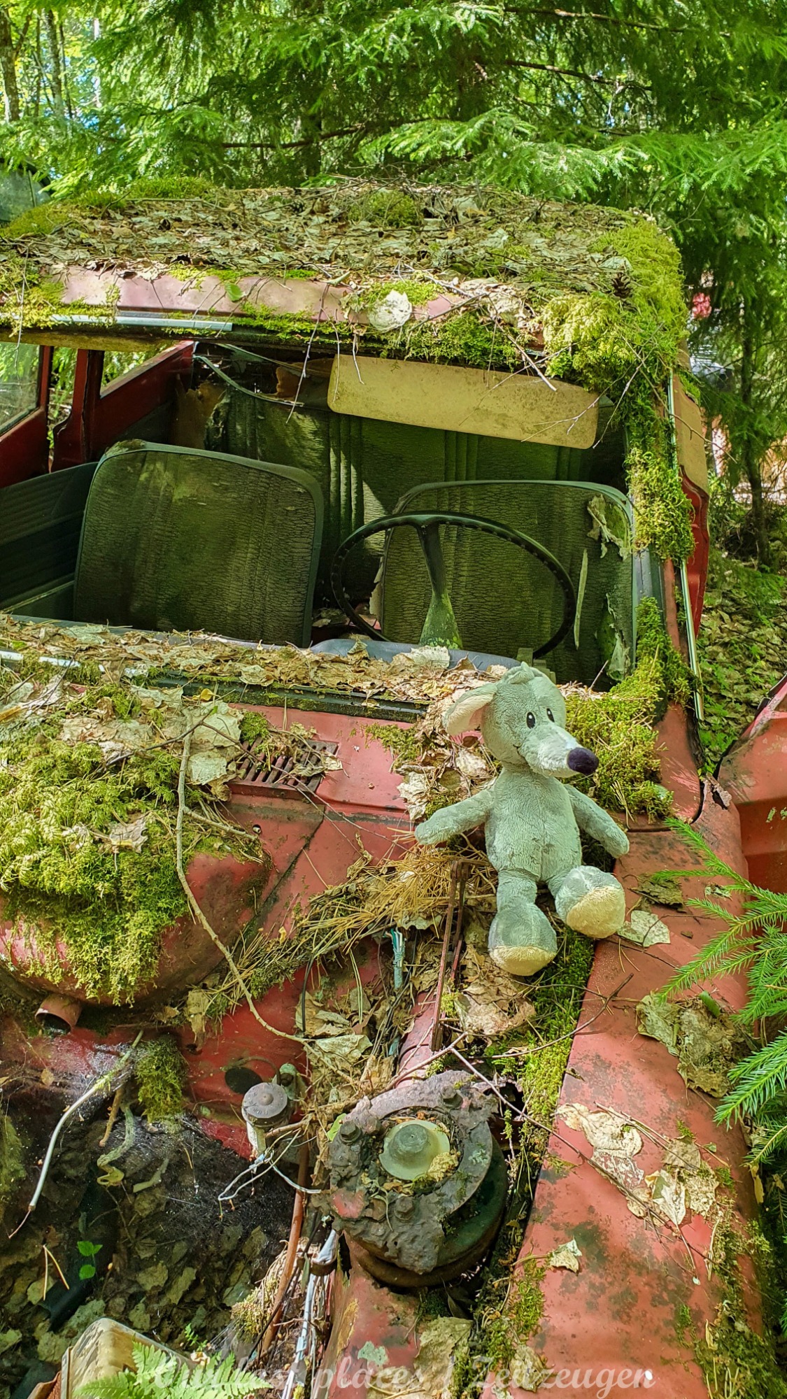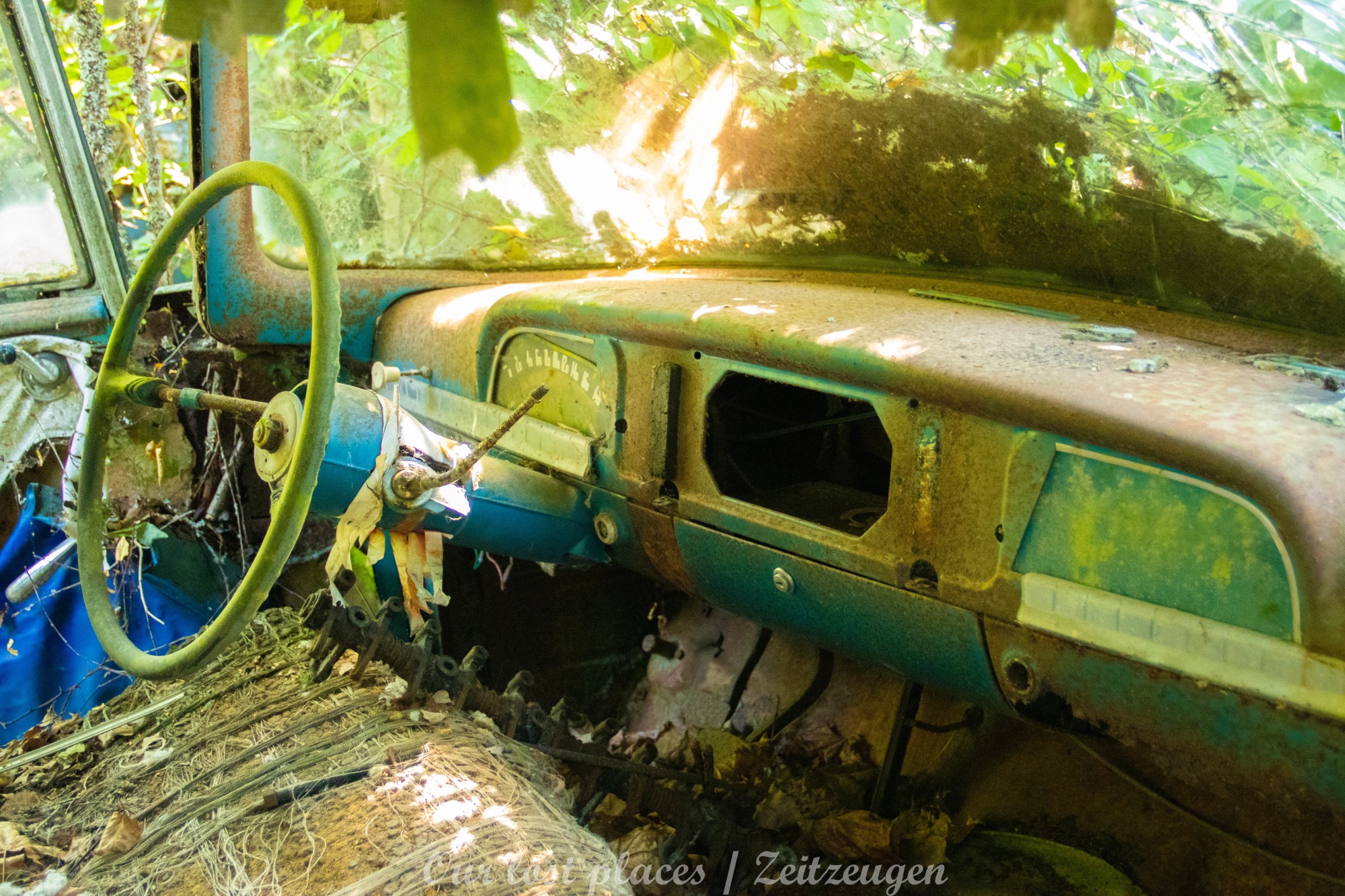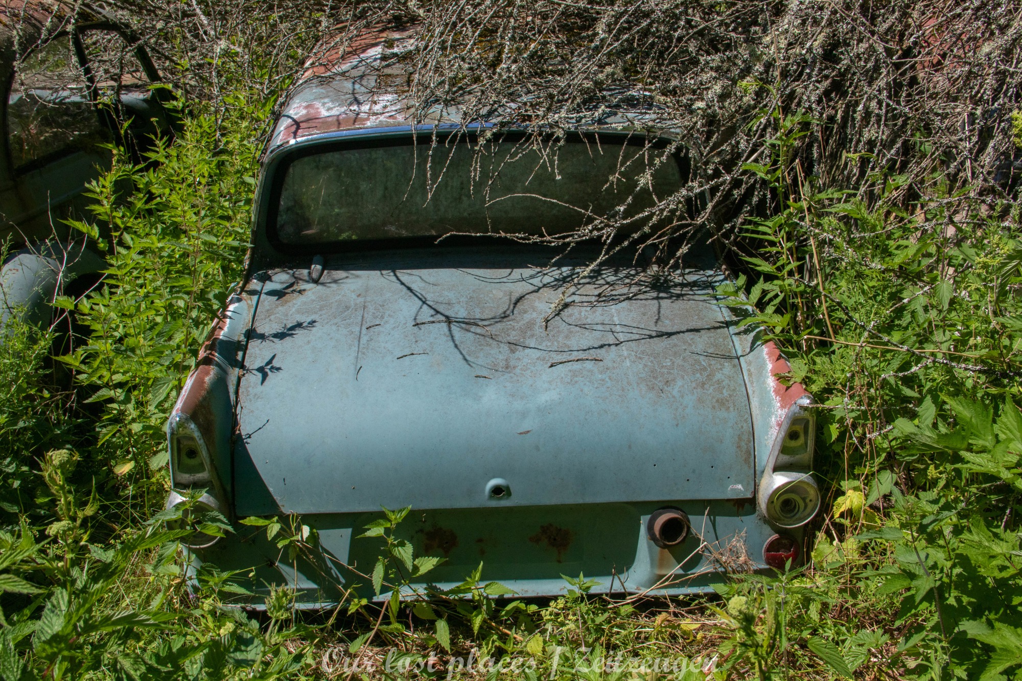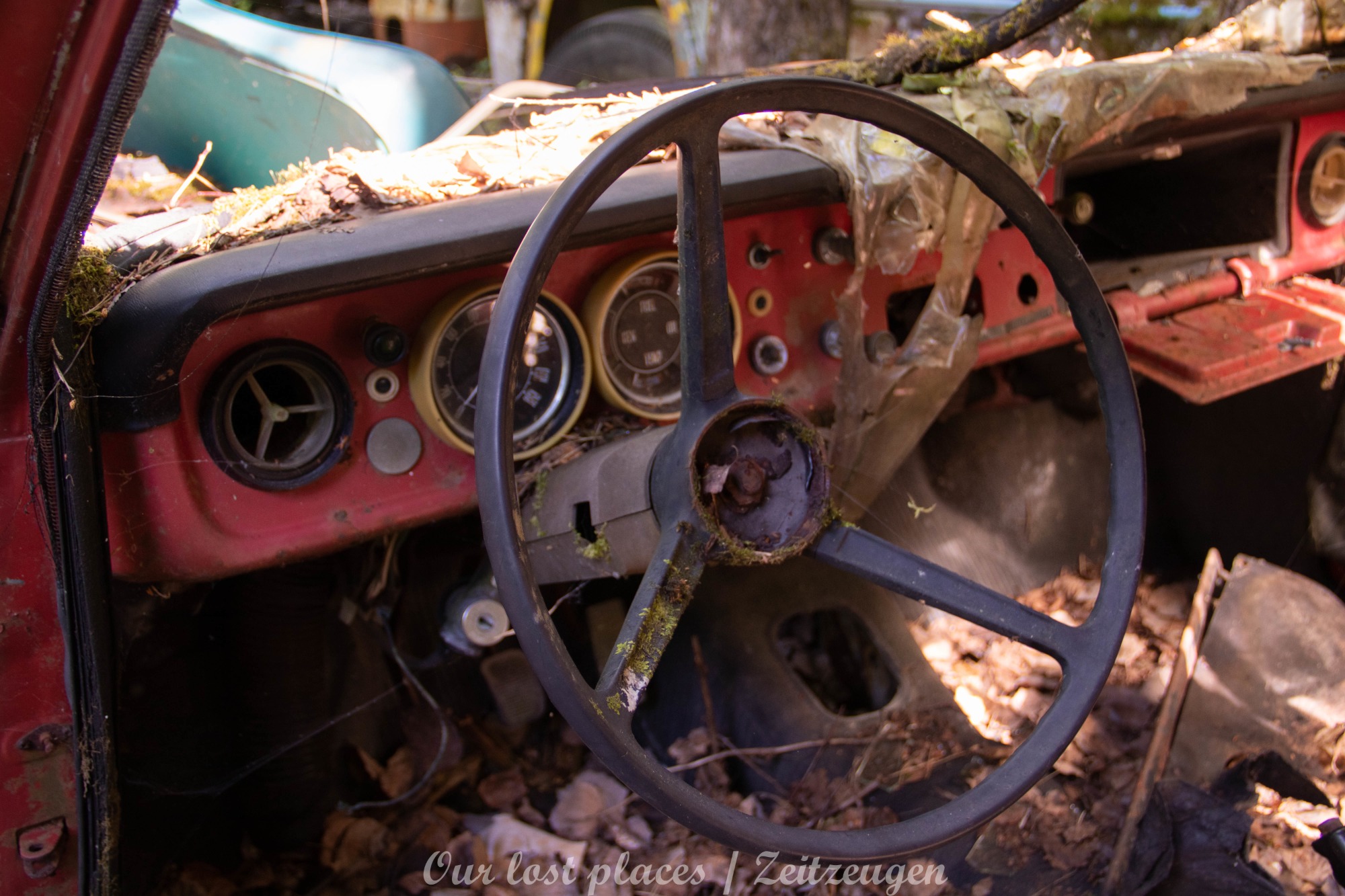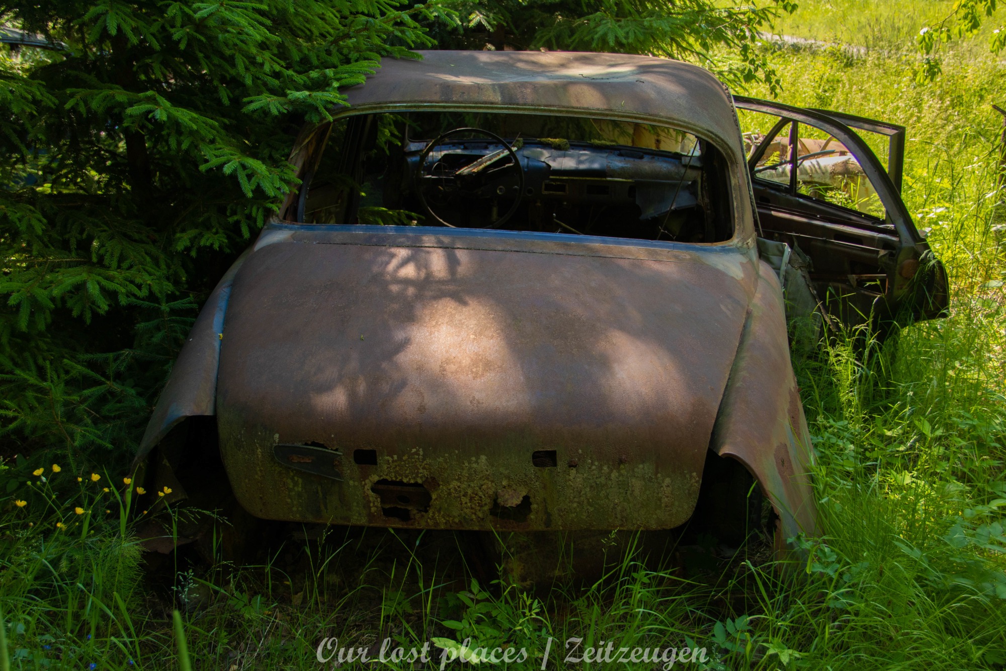 Es handelt sich hier um einen ehemaligen Schrottplatz, der vor vielen Jahren aufgegeben wurde. Nach dem zweiten Weltkrieg ging es dem Nachbarland wirtschaftlich sehr schlecht, so dass es Einfuhrzölle auf Autos einführte. Die Straßen an der Ländergrenze wurden streng kontrolliert. Autoteile blieben jedoch zollfrei, sodass Käufer in das Nachbarland fuhren um hier günstig Autos zu kaufen. Entweder montierten sie ihre mitgebrachten Autokennzeichen auf die Fahrzeuge und fuhren wieder Heim, oder das Fahrzeug wurde in drei Teile demontiert und einzeln über die Grenze gebracht. Aus dieser Situation, entwickelten zwei Brüder eine Geschäftsidee. Sie verkauften zerlegt Fahrzeuge an die Kunden aus dem Nachbarland. 1956 gründeten sie eine Autowerkstatt, direkt neben ihrem Elternhaus. Die umliegenden Felder wurden bald zu einem Schrottplatz umfunktioniert. Das Geschäft lief so gut, dass sich in Spitzenzeiten bis zu 2000 Fahrzeuge auf dem Gelände befanden. Neben der Demontage von Fahrzeugen und Überführung in das Nachbarland, lief auch der Handel mit Autoteilen, die sich Kunden aus den alten Fahrzeugen ausbauen konnten, sehr gut. Ab dem Jahr 1969 erholte sich die Wirtschaft im Nachbarland wieder. Ende der 1970iger wurden die Zollbestimmungen geändert, so dass das Geschäft der Brüder dadurch stark zurück ging. Im Jahr 1980 verloren sie die Lizenz für den Schrottplatz. Aufräumarbeiten? Fehlanzeige. So verblieben rund 800 Fahrzeuge auf dem Gelände.
