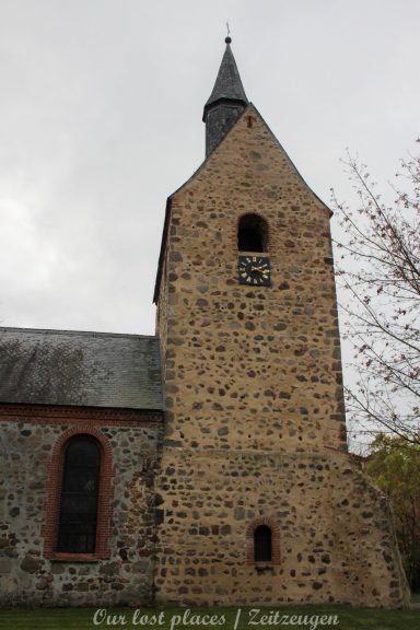 Die Kirche selber ist eine romanische Saalkirche, aus Feldsteinen errichtet und Anfang des 13 Jhs erbaut. Das Ostfenster und die Priesterpforte sind tatsächlich noch im Originalzustand. Der Rest wurde zwischen 1866 und 1906 verändert. Der erhöhte Zugang zur Turmsüdseite stammt aus dem Mittelalter. Auch beim Turm gab es im Jahr 1906 einige Erneuerungen. Der mittelalterliche Glockenstuhl ist aber erhalten geblieben. Ein Blitzschlag verursachte bauliche Schäden am Turm. Nach einem Bericht aus den Jahren 1793–1794 musste eine Instandsetzung erfolgen, da der Kirchturm von oben bis unten geborsten, das Dach heruntergefallen, die Treppen zerbrochen und das Gewölbe eingefallen war. Die Risse im Turmmauerwerk konnten erst bei der Restaurierung der Kirche mit Unterstützung der Deutschen Stiftung Denkmalschutz nach 2001 beseitigt werden, die wegen einer baulichen Sperrung der Kirche erforderlich wurde.