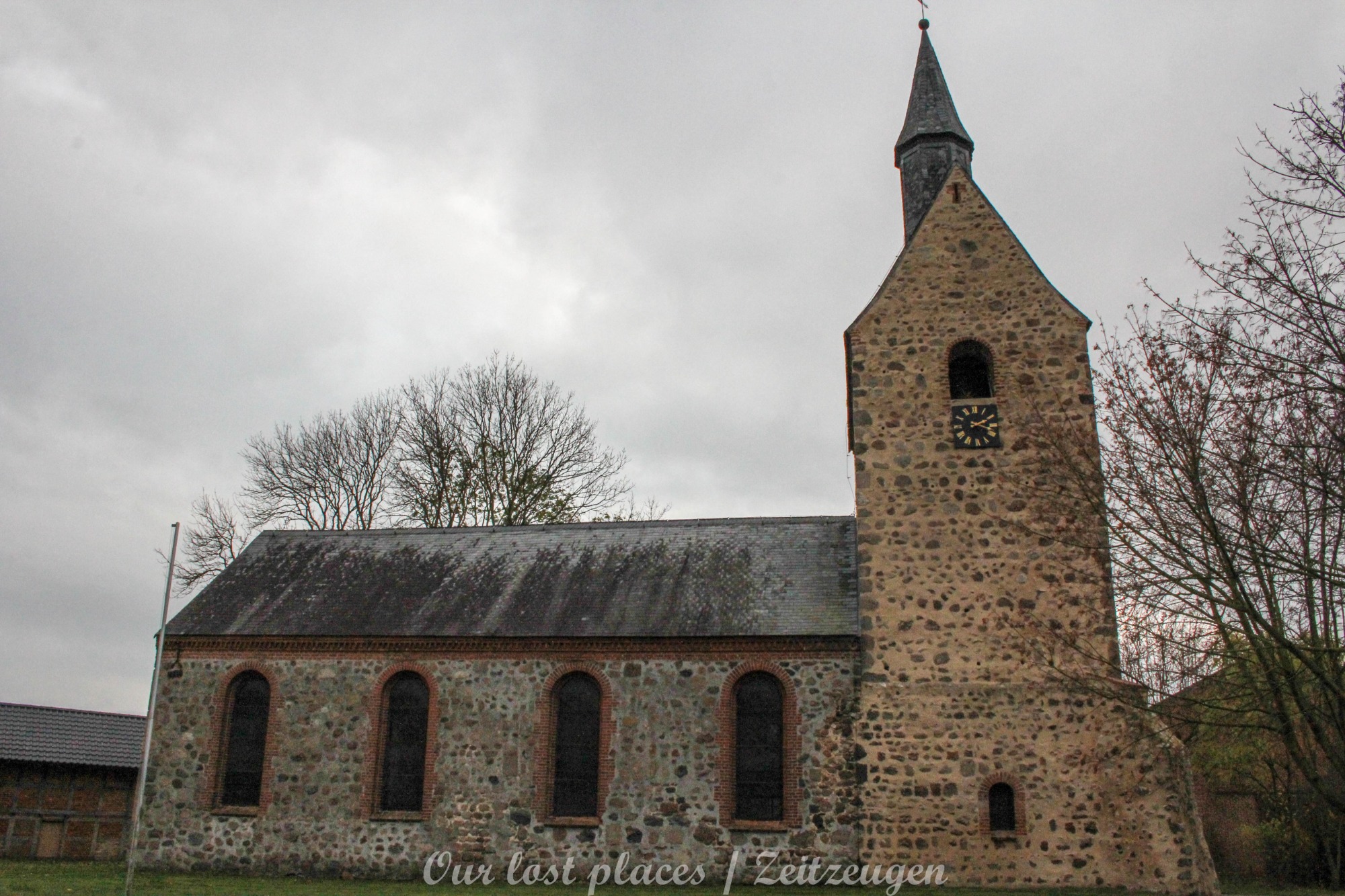 Friedhöfe und alte Kirchen haben uns schon immer fasziniert. Und so kam es, dass wir auf unserer Tour durch ein kleines Dorf fuhren und uns sofort eine alte Feldsteinkirche ins Auge stieß. Und auch ein kleiner Freidhof war mit auf de Gelände. Also Anker geworfen und Kameras geschnappt. In die Kirche kamen wir leider nicht rein, da sie verschlossen war. Schade, hätte uns schon interessiert, wie es Innen aussieht, aber man kann ja nicht alles haben. Daher nur Außenaufnahmen von dem Gotteshaus. Dafür konnten wir uns auf dem kleinen Gottesacker etwas mehr austoben.