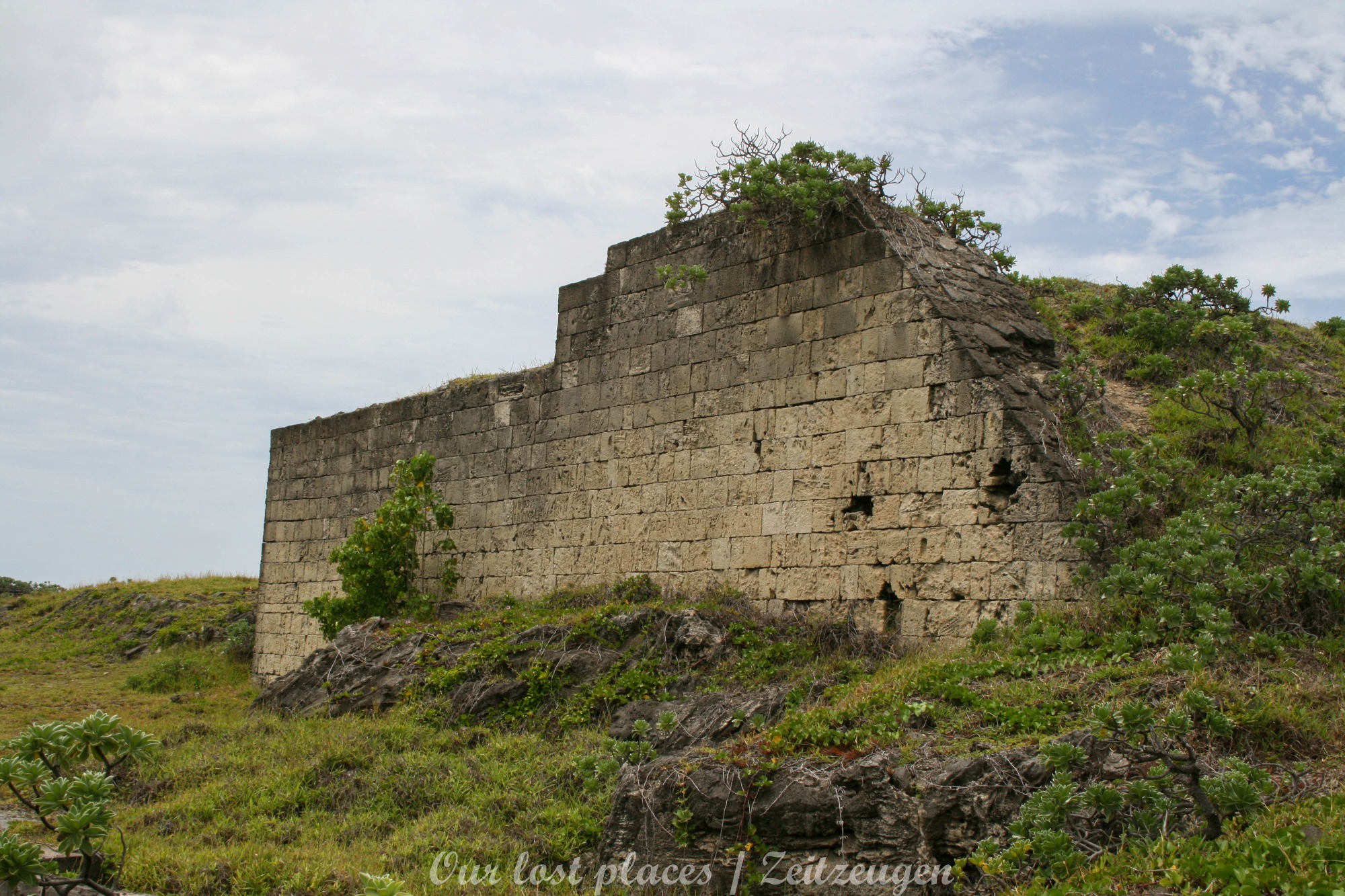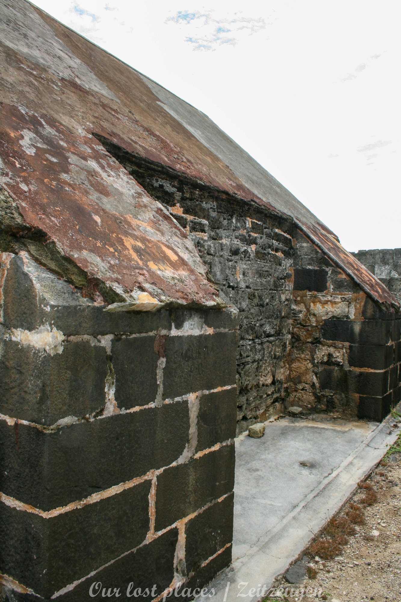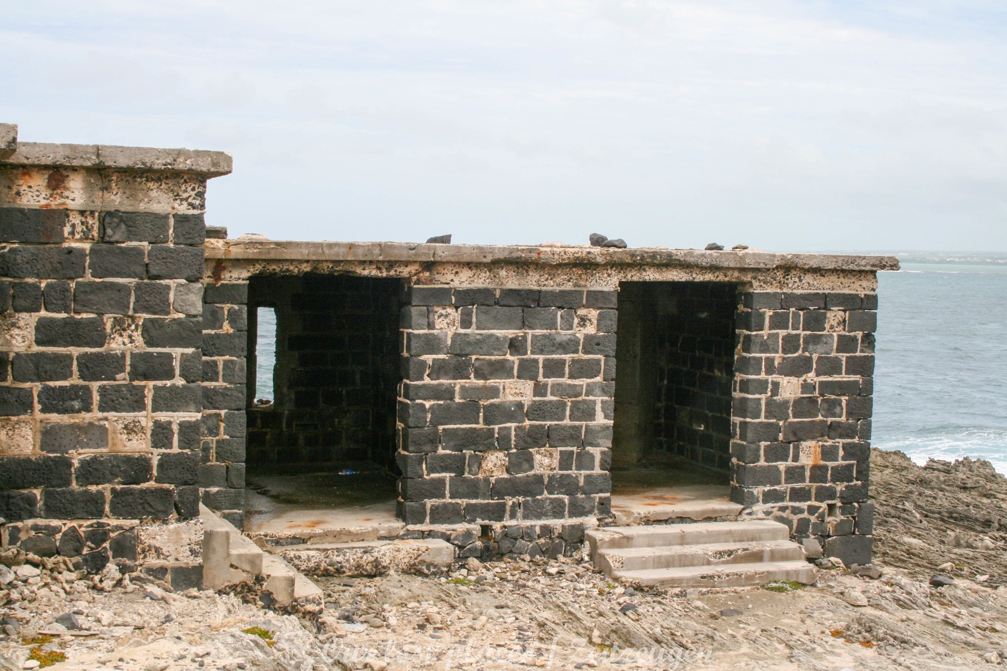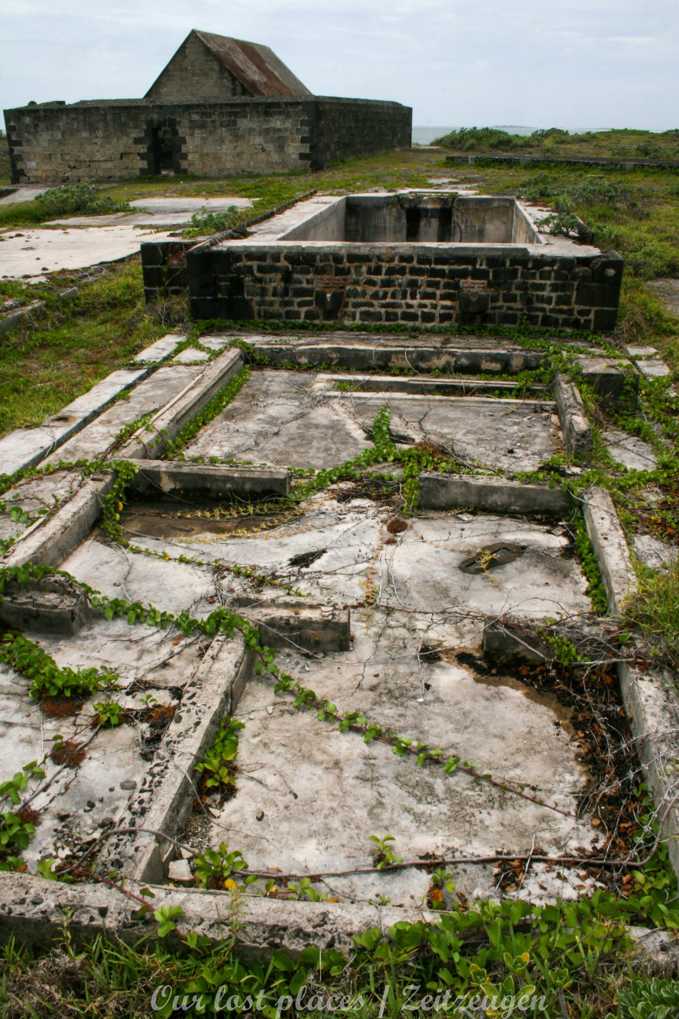 Die Häuser, Schuppen und Bunker sind überwiegend aus Korallengestein erbaut. Erst beim Umbau im 2. WWK kamen in einigen Bereichen auch Stahlbeton zum tragen.