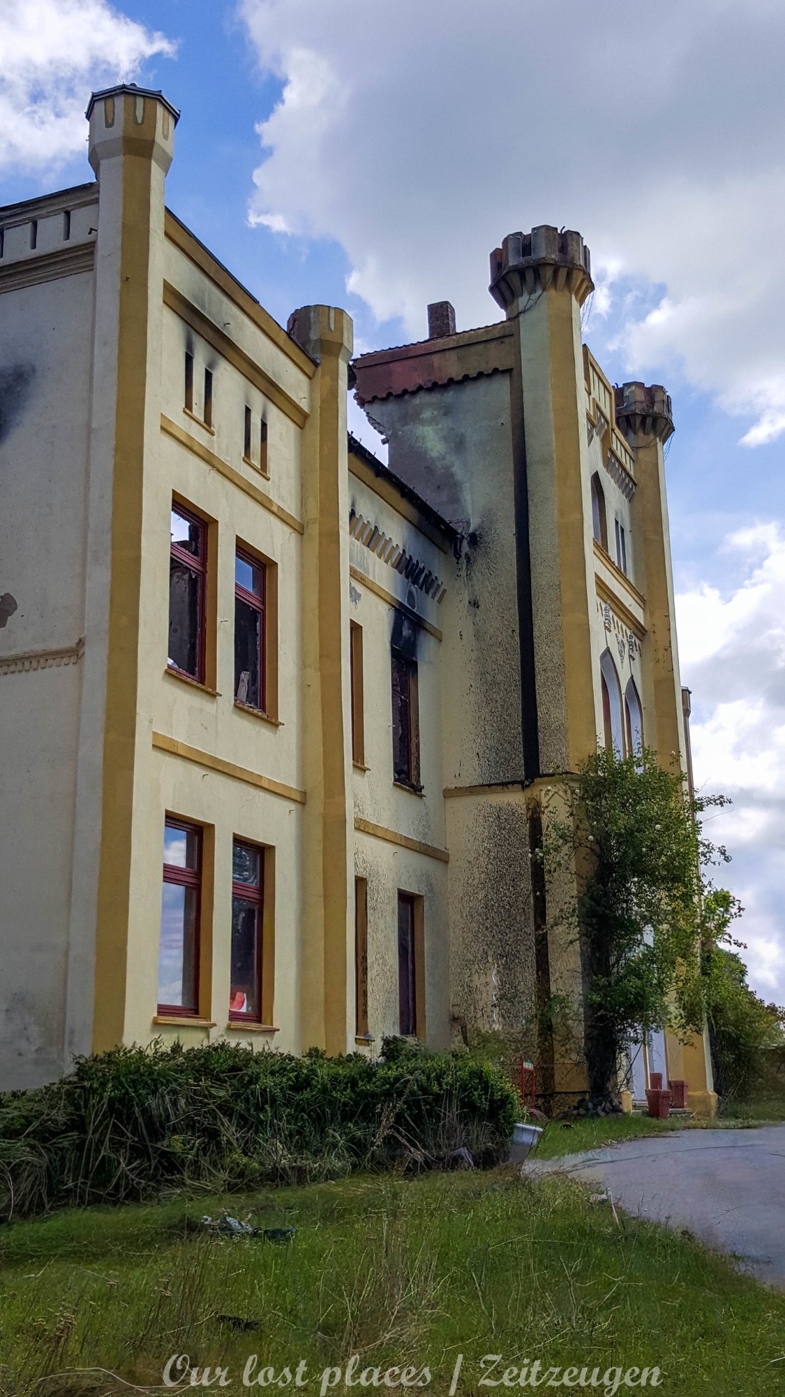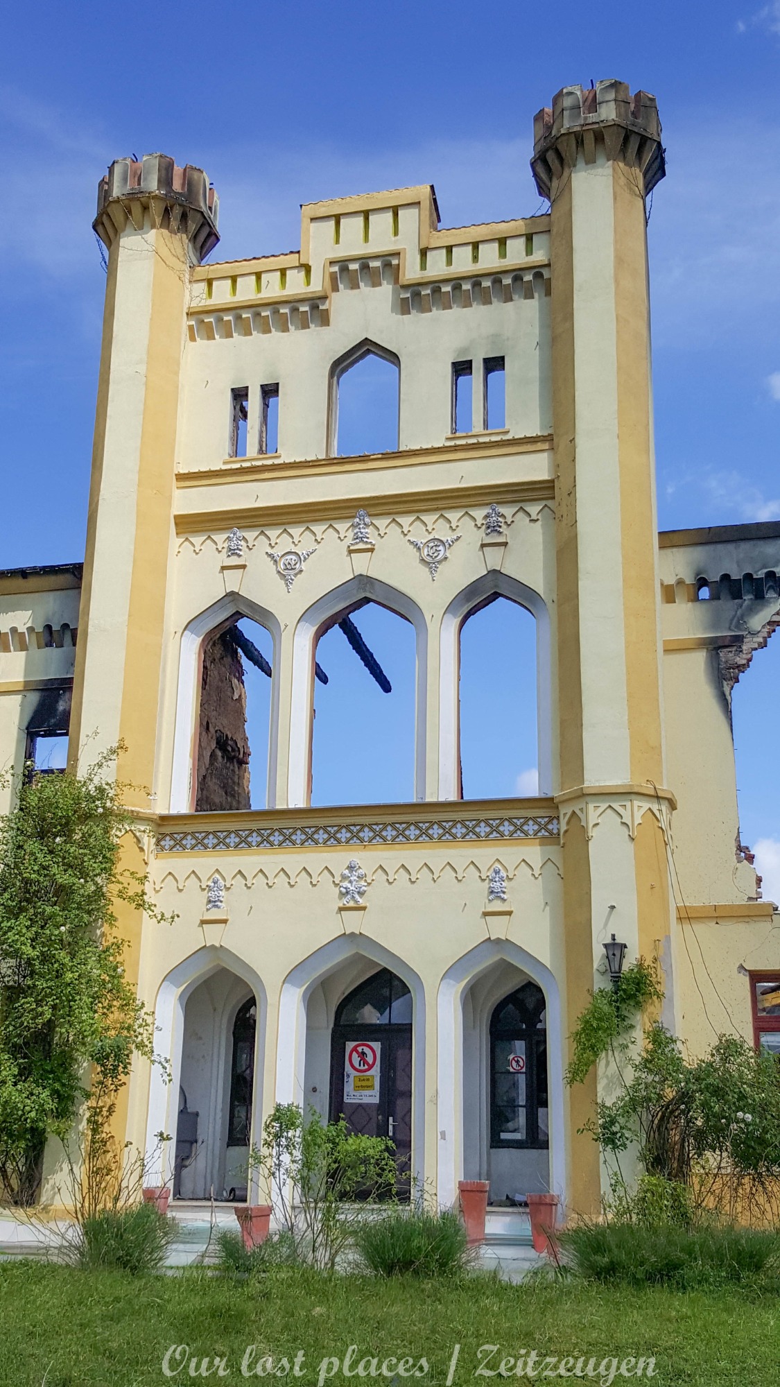 Das Gut hat schon eine lange Geschichte die bis ins 15 Jhs reicht. Die Besitzverhältnisse wechselten sehr häufig. Im 18 Jhs wurde ein einstöckiges Herrenhaus errichtet. Auf Bitte des damaligen Eigentümers wurde der Ort umbenannt und erhielt 1793 den Namen, den der Ort heute trägt. Im 19 Jhs kam es wieder zu reichlich Besitzerwechsel des Gutes. Im Jahre 1843 ließ der Gutsbesitzer ein neues Herrenhaus im neogotischen Stil errichten. Das heutige Herrenhaus, bzw. dass was noch davon übrig ist. In den Folgejahren bis 1898 wechselte noch zweimal der Besitzer. Die letzten Besitzer errichteten hier ein Vollblutgestüt inkl. Einer Trainingsbahn. Ab 1932 wurde das Gut teilweise aufgesiedelt. Das Restgut blieb bis 1945 im Besitz der Familie. Durch die Besetzung der russischen Armee ging das gesamte Inventar verloren. Auch die 70 Vollblutpferde konnten nicht gerettet werden. Nach dem zweiten Weltkrieg zogen Flüchtlinge in das Gutshaus ein. Später wurden hier auch eine Kinderkrippe und eine Gaststätte untergebracht. Nach der Wende stand das Gutshaus Jahre lang leer. Ende der 90er Jahre fanden sich neue Besitzer die es nach und nach sanierten. Im Foyer wurde eine neue Gaststätte eingerichtet, die im gesamten Umfeld auch einen guten Ruf hatte. Am 11.04.2016 brach in der Nacht ein Feuer aus. Die Eigentümer konnten sich noch gerade in Sicherheit bringen. Das Gutshaus brannte jedoch bis fast auf die Grundmauern ab. Es machte schnell die Runde, dass scheinbar da jemand nachgeholfen haben musste, denn unmittelbar nach dem Brand meldeten die Gutshausbesitzer Insolvenz an. Auf Grund von Auswertungen der Brandermittler konnte keine Anklage erhoben werden, da ein technischer Defekt nicht ausgeschlossen werden konnte. Seitdem steht das Gutshaus als Brandruine und verfällt weiter. Eine Rettung wird es hier wohl nicht mehr geben.