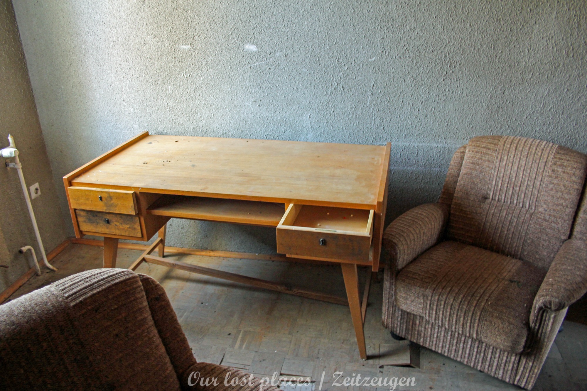 Hier sind wir doch tatsächlich bei der Recherche an unsere Grenzen gestoßen. Über das Haus war im Netzt absolut nichts zu finden. Etwas abseits von einer kleinen Gemeinde, schon fast am Waldrand ist dieses Haus zusammen mit einem kleinen Gästehaus und einem Schuppen oder Stall steht dieser Gebäudekomplex. Von der Straße kaum noch zu sehen, da das Umfeld mittlerweile stark zugewachsen ist. Das Dorf ist nicht gerade groß mit rund 1800 Einwohnern. Die erste urkundliche Erwähnung des Dorfes war im Jahr 1220. Wir vermuten mal, dass das Haupthaus, welches wir besucht haben, im 19 Jhs. errichtet wurde. Zeitungsreste, die wir im Haus gefunden haben, kommen aus dem Jahr 1982, daher vermuten wir mal, dass das Haus um dieses Jahr rum wohl verlassen wurde und seitdem leer steht. Interessant ist, dass wir in dem Objekt noch reichlich Dinge gefunden haben. Neben viel Eingemachtem gab es auch eine schöne alte Schreibmaschine und noch viele Möbel, die teilweise auch aus älteren Zeiten zu stammen schein.