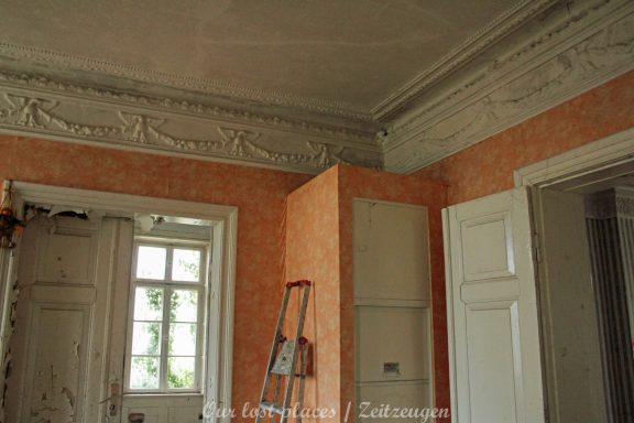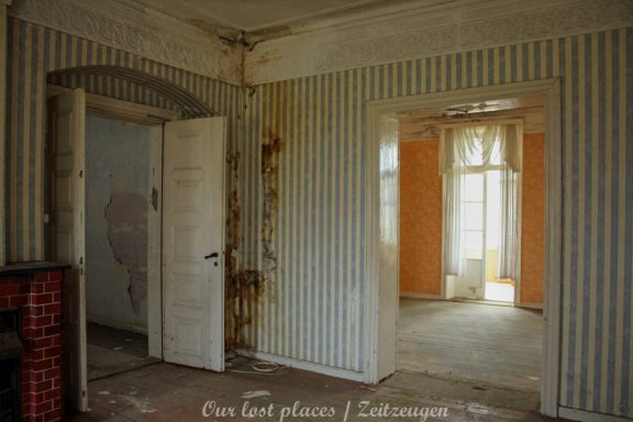Die Villa selber wurde irgendwann Anfang des 19 Jhs als Gutshaus erbaut. Ein genaues Datum konnten wir leider nicht rausfinden. Bis in die erste Hälfte des 19 Jhs gehörte das Gutshaus zu einem Kloster. Die Anlage wurde damals auf einer Insel errichtet, die durch Eindeichung landfest gemacht wurde. Trotzdem wird das Gebiet öfters bei Hochwasser komplett überschwemmt. Gerade der Kellerbereich wird dadurch immer wieder in Mitleidenschaft gezogen.